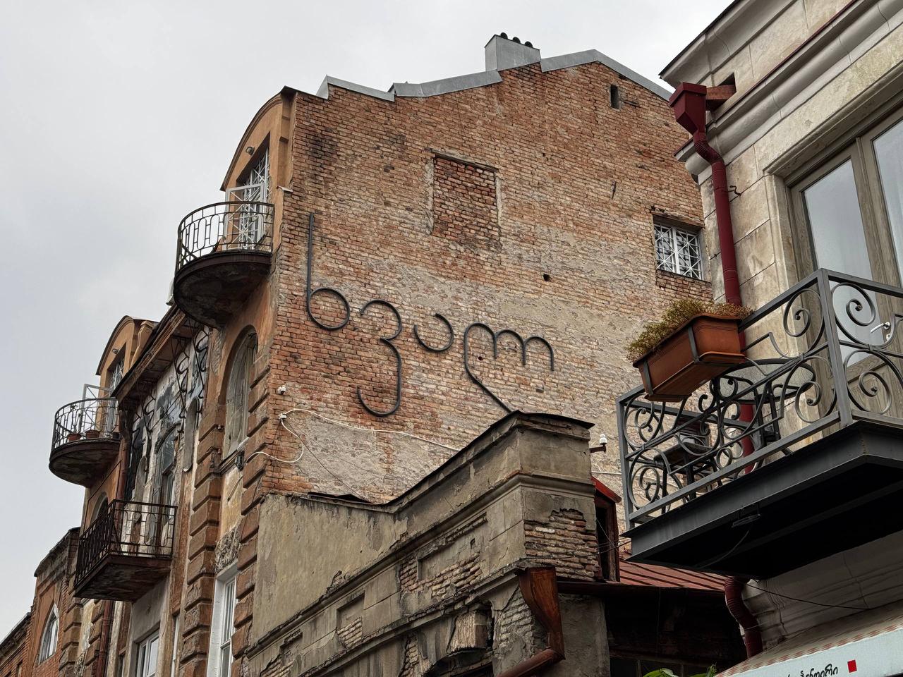 Потом — легендарный дом с надписью “ხვალ” — «ЗАВТРА». Майолика и окна сложной формы.