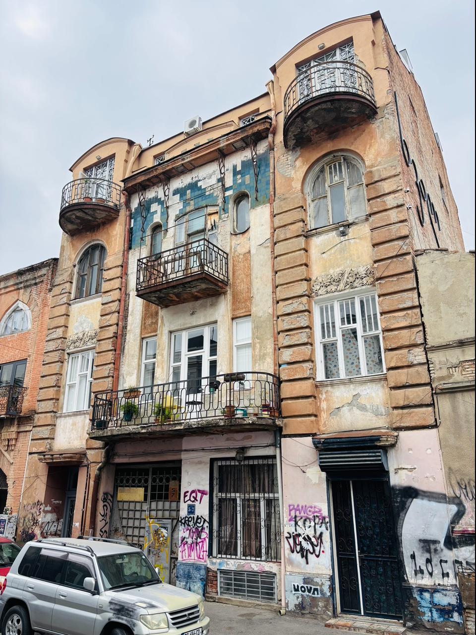 Модерн заметен даже в тифлисских деревянных резных застекленных балконах шушабанди во внутреннем дворике. Кстати, когда-то такие шушабанди считались самостроем, но потом их узаконили и сделали частью архитектуры, чуть придав лоску.