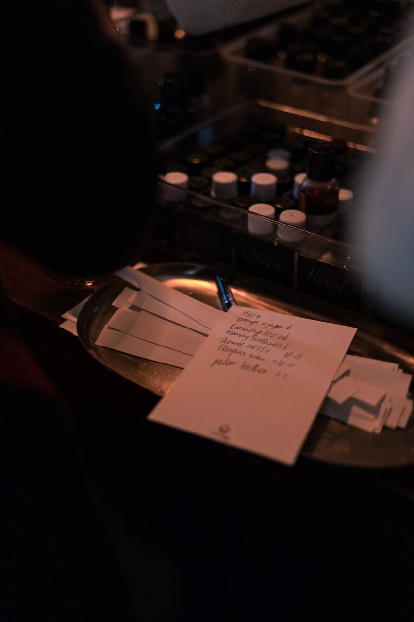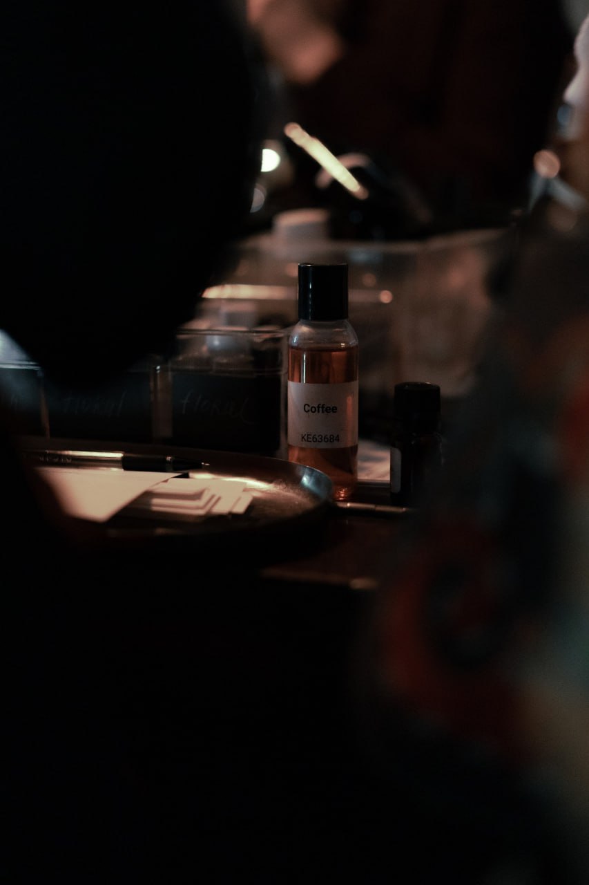 Каждая участница выбирала всё сама: базу, ноты, отдушки, настроение. А потом начиналась магия: девочки шли к Яне за советами — что усилить, что смягчить, где добавить полыни, а где убрать ладан. Яна умеет собирать ароматы и помогала каждой выстроить композицию так, чтобы она звучала “правильно” — цельно, уверенно, красиво и передавала то настроение, которое хотелось автору.