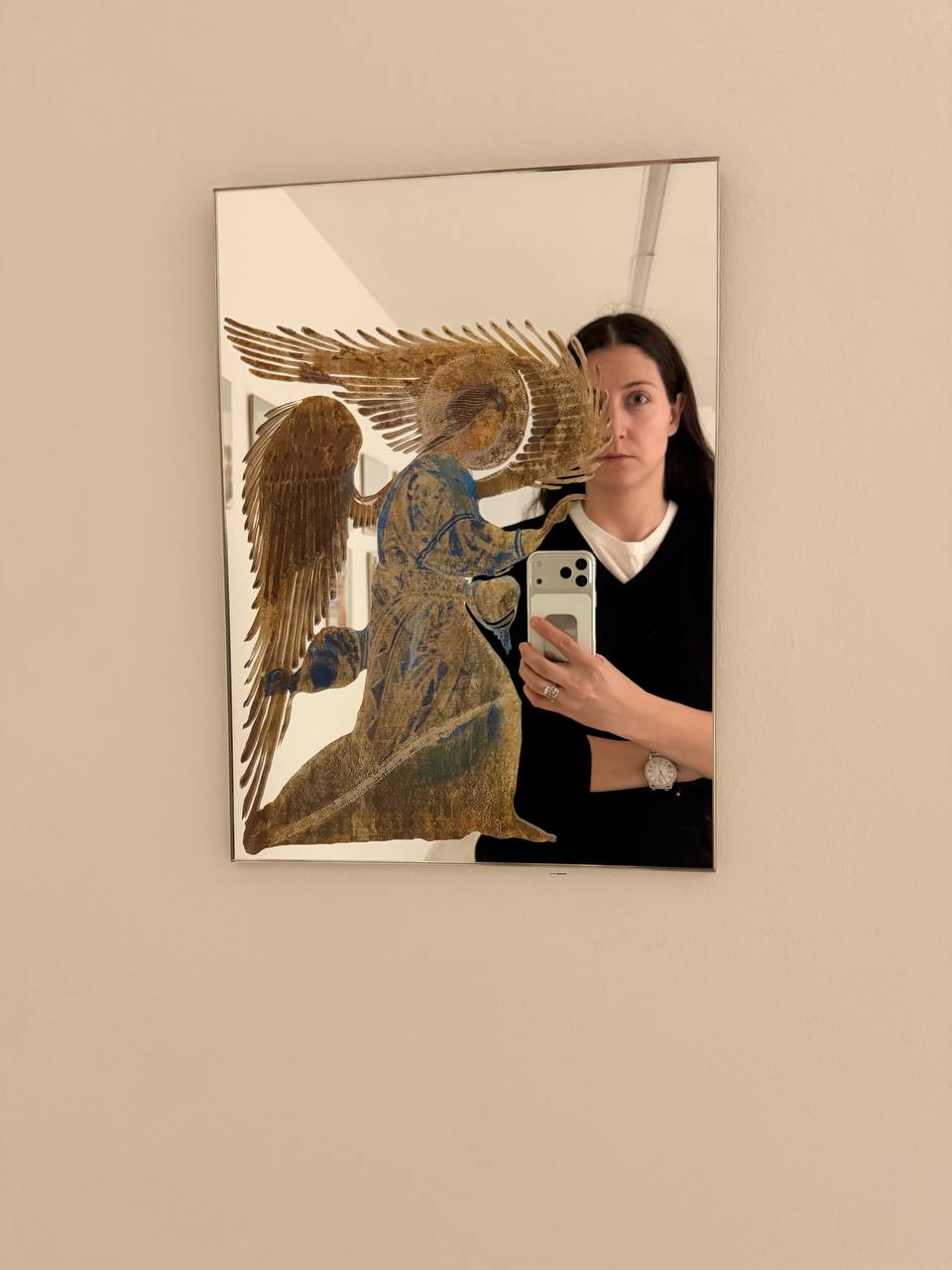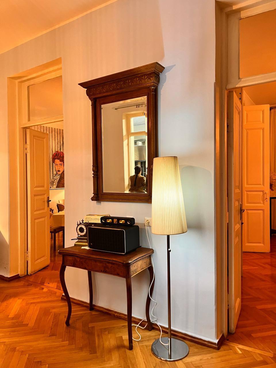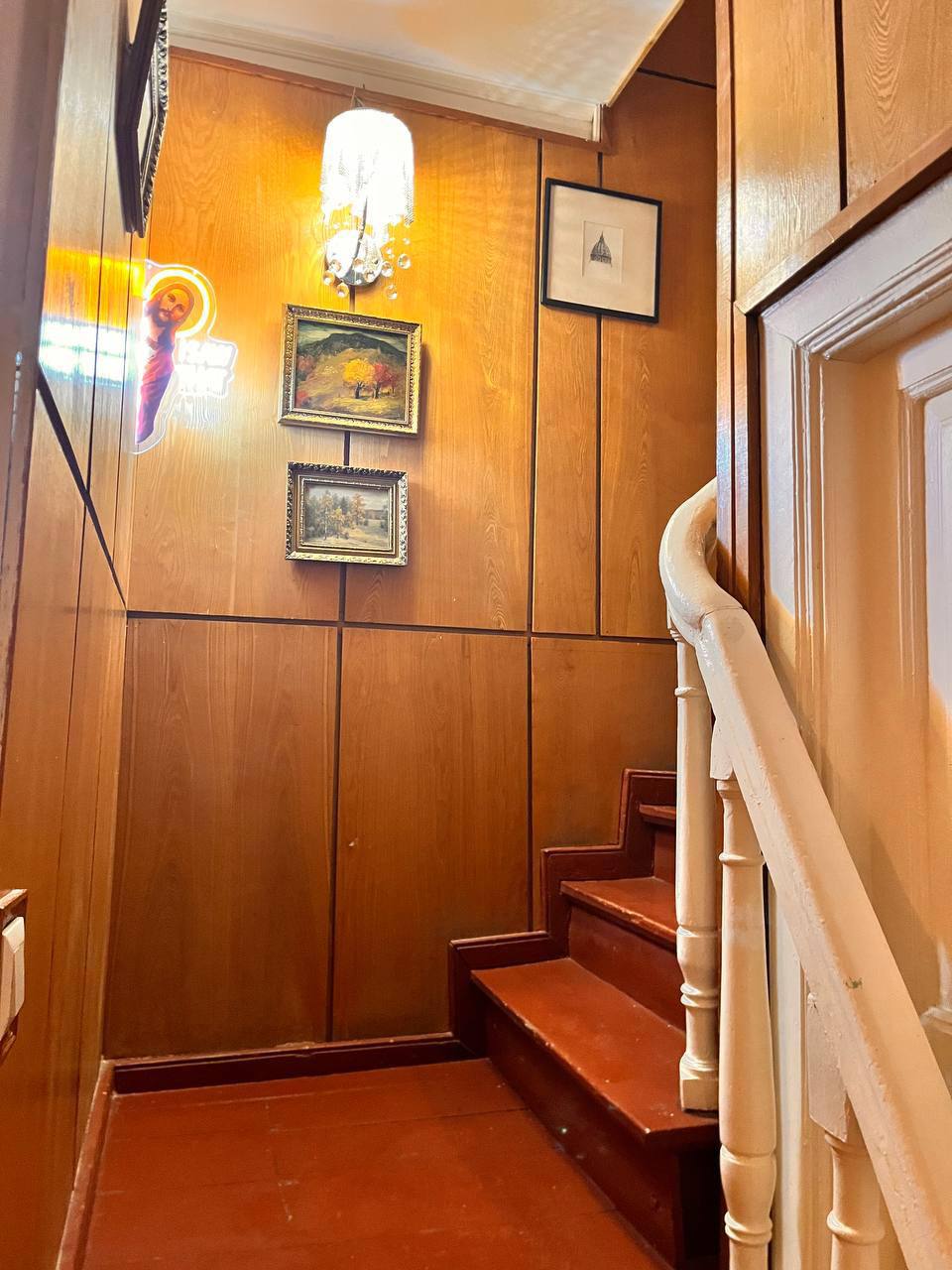 Интерьер ресторана оказался обманчив. Театральные маски, дерево в отделке, белые скатерти, кованые детали, антиквариат, негромкая классическая музыка настраивали на спокойную элегантность. И наряду с этим — китчевое панно во всю стену, гротескный интерьер уборной (сами увидите, не будем портить сюрприз). На лестнице обращаем внимание на светящегося Христа с надписью «Я всё видел!». Официант смеётся: неоновую фигуру однажды принёс шеф, никому ничего не сказав. Кажется, ироничные детали всё-таки складываются в картину вполне запланированного хулиганства, будто мы попали в квартиру эксцентричного человека.