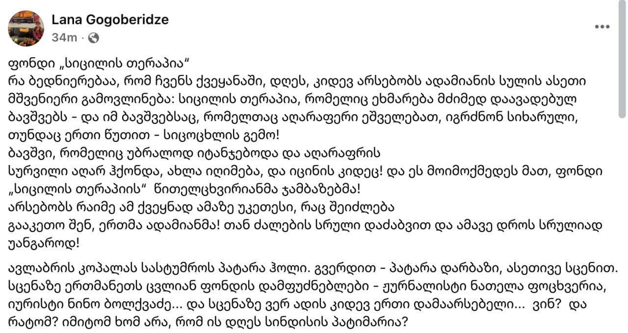 И я все собиралась с мыслями, чтобы рассказать, что же мы сделали тем вечером, но госпожа Лана Гогоберидзе написала такой проникновенный пост, что я его читаю, рыдаю и понимаю, что сама не сказала бы лучше.