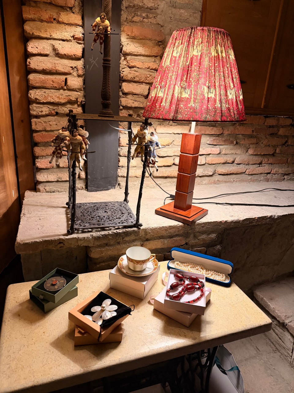 Кофейная чашечка и брошь от Нани Брегвадзе, бусы от великого режиссера Ланы Гогоберидзе, потрясающие брошь и бусы от Принцессы Анны.