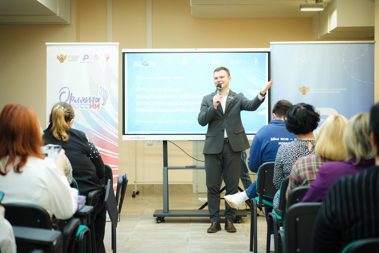 👌На открытии Года дошкольного образования в Нижегородской области Никита Андреевич Тарасов представил опыт реализации программы «Орлята-Дошколята» в регионе, познакомив участников с ключевыми направлениями программы, а также обозначил основные задачи дошкольных образовательных учреждений на 2026 год.