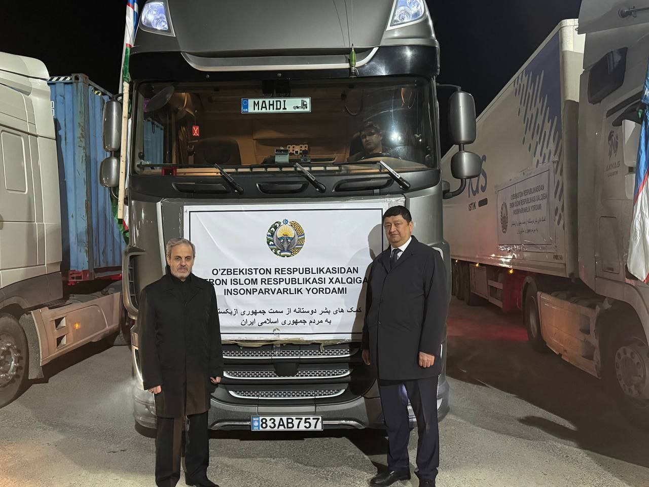 Өзбекстан ҳүкимети азық-аўқат өнимлери, атап айтқанда, ун, гүриш, қумшекер, макарон өнимлери, айғабағар майы, консервалар, сондай-ақ, дәрилер ҳәм медициналық буйымлардан ибарат гуманитарлық жүкти Иранға жеткерген.
