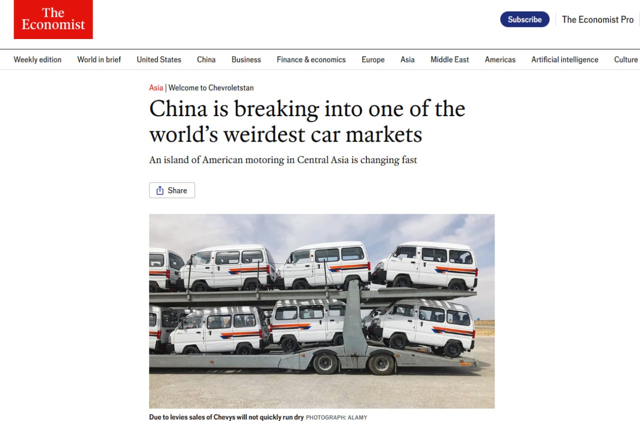 The Economist журналы жаңа санында Өзбекстанды «дүньядағы ең әжайып автомобиль базарларының бири» деп атаған ҳәм елимиздеги автосанаат трансформациясы ҳаққында өз алдына мақала таярлаған.