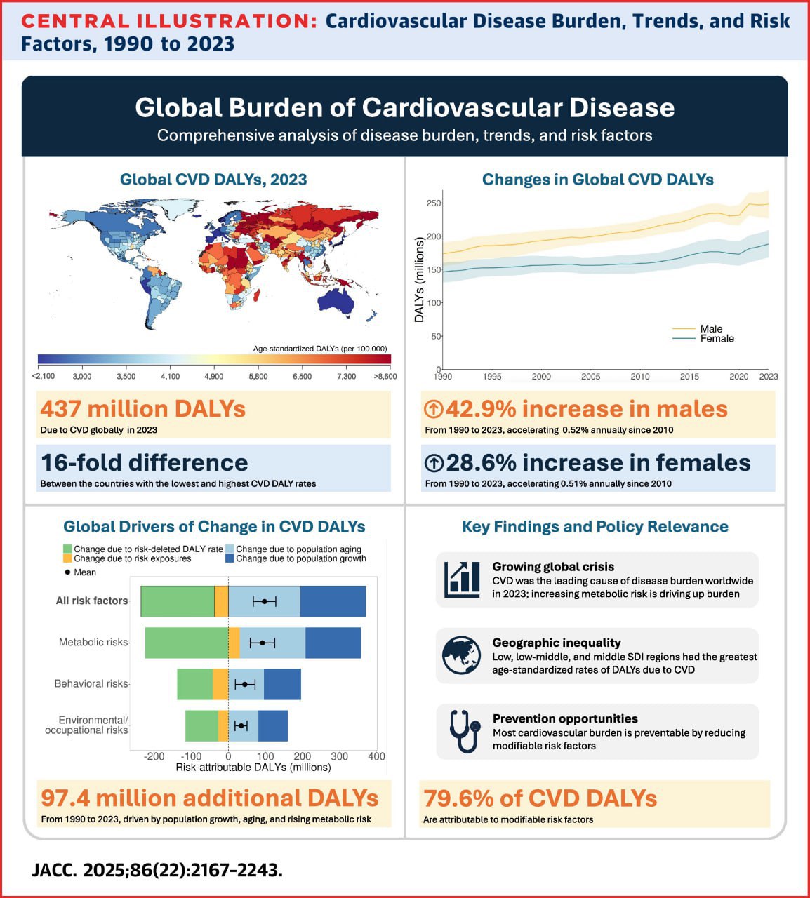 🫀 На картинке к посту видно, как все плохо с сердечно-сосудистыми заболеваниями в России. В мире же почти на треть увеличилось число смертей от них, а общее количество случаев выросло более чем вдвое. При этом почти 80% бремени ССЗ связано с факторами риска, на которые можно повлиять: гипертонией, повышенными уровнями холестерина и глюкозы в крови, нездоровым питанием, вредными привычками, малоподвижностью, ожирением и загрязнением воздуха. Самый значимый немодифицируемый фактор — старение населения. При этом в странах с высоким уровнем жизни заболевания сердца и сосудов сказываются на их жителях меньше, хотя они в среднем старше. Предполагаю, что там у людей больше возможностей питаться нормальной едой, заниматься спортом и так далее. В целом между регионами есть заметные различия в факторах риска. Например, в Африке на ССЗ сильнее, чем везде, влияет загрязненность воздуха в помещениях из-за отопления дровами или углем, в Азии — высокое потребление соли и распространенность гипертонии, а в Восточной Европе просто много пьют.