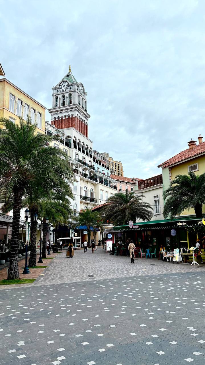 ✅Sunset Town. Живописный прибрежный городок, будто сошедший со страниц европейской сказки. Архитектура в средиземноморском стиле, мощеные улочки и незабываемые закаты. Обязательно прогуляйтесь по Мосту Поцелуев (Kiss Bridge), вдохновленному легендой о любви, а вечером посмотрите шоу «Поцелуй Моря» - феерическое представление с огнем, светом и музыкой.