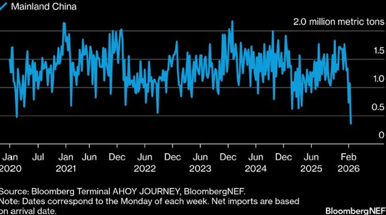 В ЕС объем регазификации СПГ в портовых хранилищах по состоянию на утро 24 февраля на уровне 42,5% (в январе средняя производительность составила 46,6%, на максимуме - 77%).