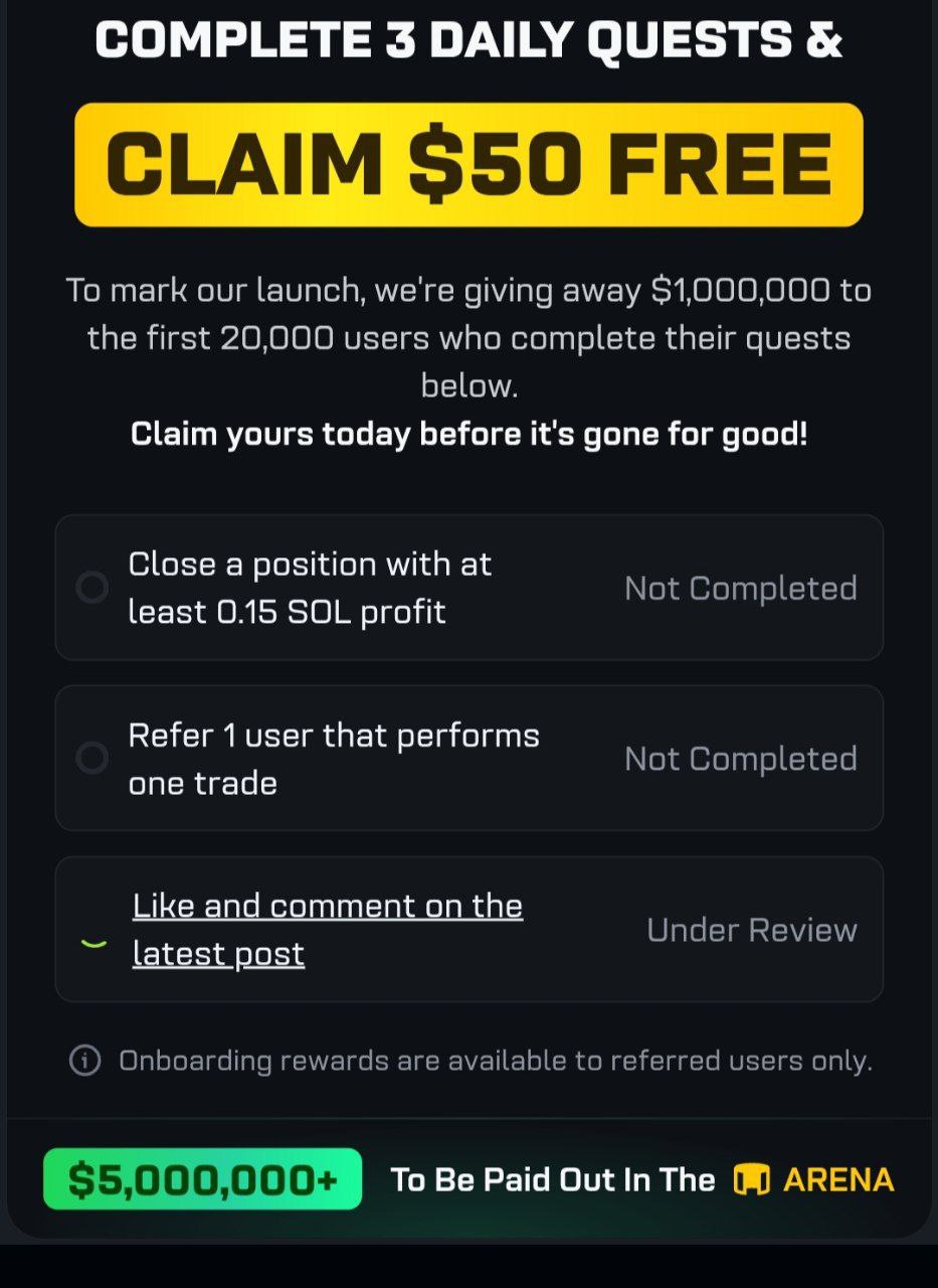 создаёшь аккаунт -делаешь объём 1–2 SOL -забираешь $50.