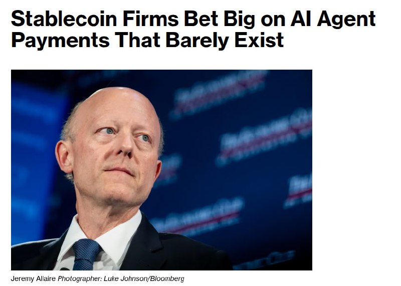 Источник https://www.bloomberg.com/news/articles/2026-03-07/stablecoin-firms-bet-big-on-ai-agent-payments-that-barely-exist?taid=69ac35a7155caf0001a256ce