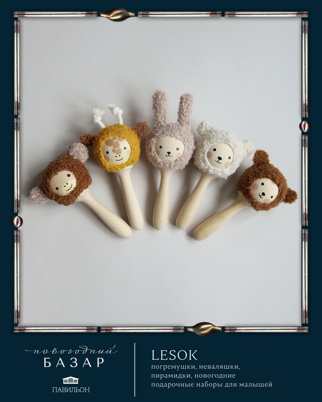 Lesok — погремушки, неваляшки, пирамидки, новогодние подарочные наборы для малышей и стильные елочные украшения;