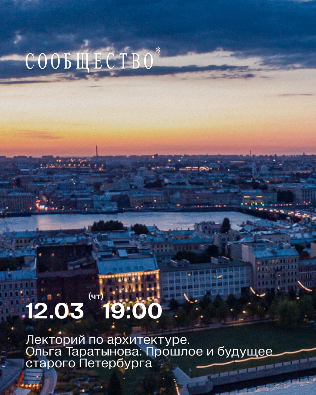 В четверг, 12 марта, на новой встрече архитектурного лектория в «Сообществе» будем вместе с директором Государственного музея-заповедника Царское село, специалистом по сохранению наследия Ольгой Таратыновой обсуждать прошлое и будущее старого Петербурга.