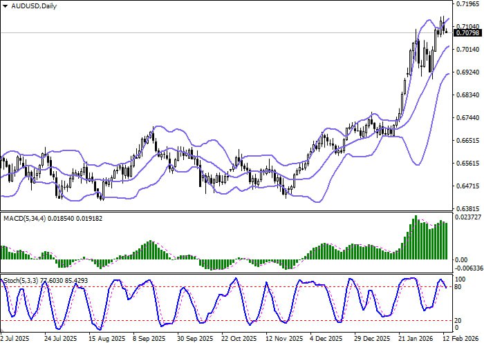 Индикатор RSI (14) приближается к зоне перепроданности, не входя в неё, что позволяет рассматривать новые короткие позиции.