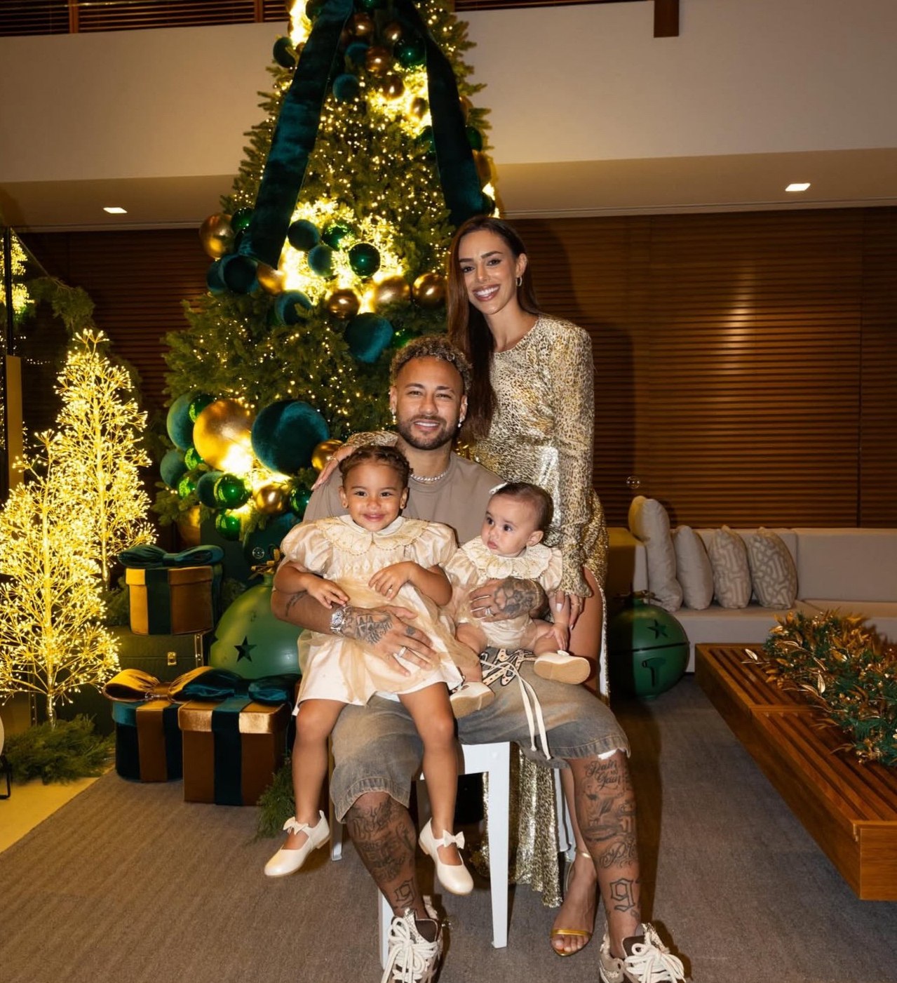 «Многие думают, что есть целая команда людей, которые делают всю работу, а мы просто наблюдаем, но это совсем не так! Например, Неймар, когда я прошу или даже просто замечаю, что подгузник у девочек испачкался, сразу меняет его. По-моему, это показывает, что мы обычные родители и совершенно обычная семья.»