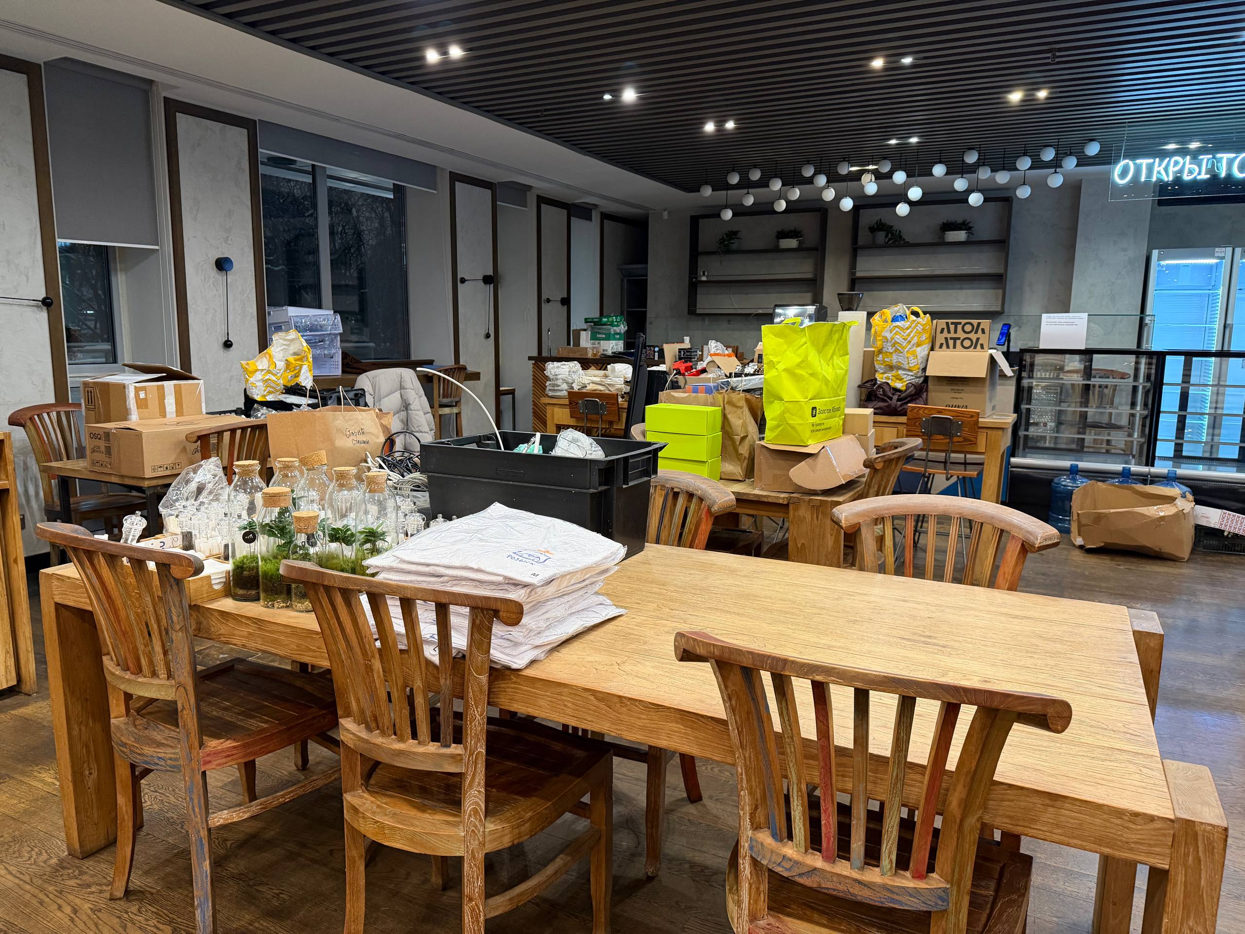 Благо, варианты уже нашёл и по производству продукции на витрину, и по производству заготовок на бар. Осталось только найти сухой склад, так как у нас очень большие запасы стаканов, инвентаря, хозтоваров и прочего всего.