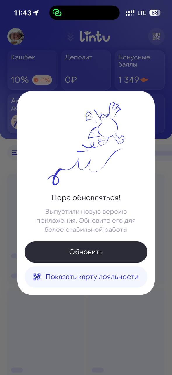Думаю, на этом всё понятно. Только что мы сломали старую версию. У всех, у кого старая версия: мы как могли показали пользователю, что нужно обновиться (фото два).