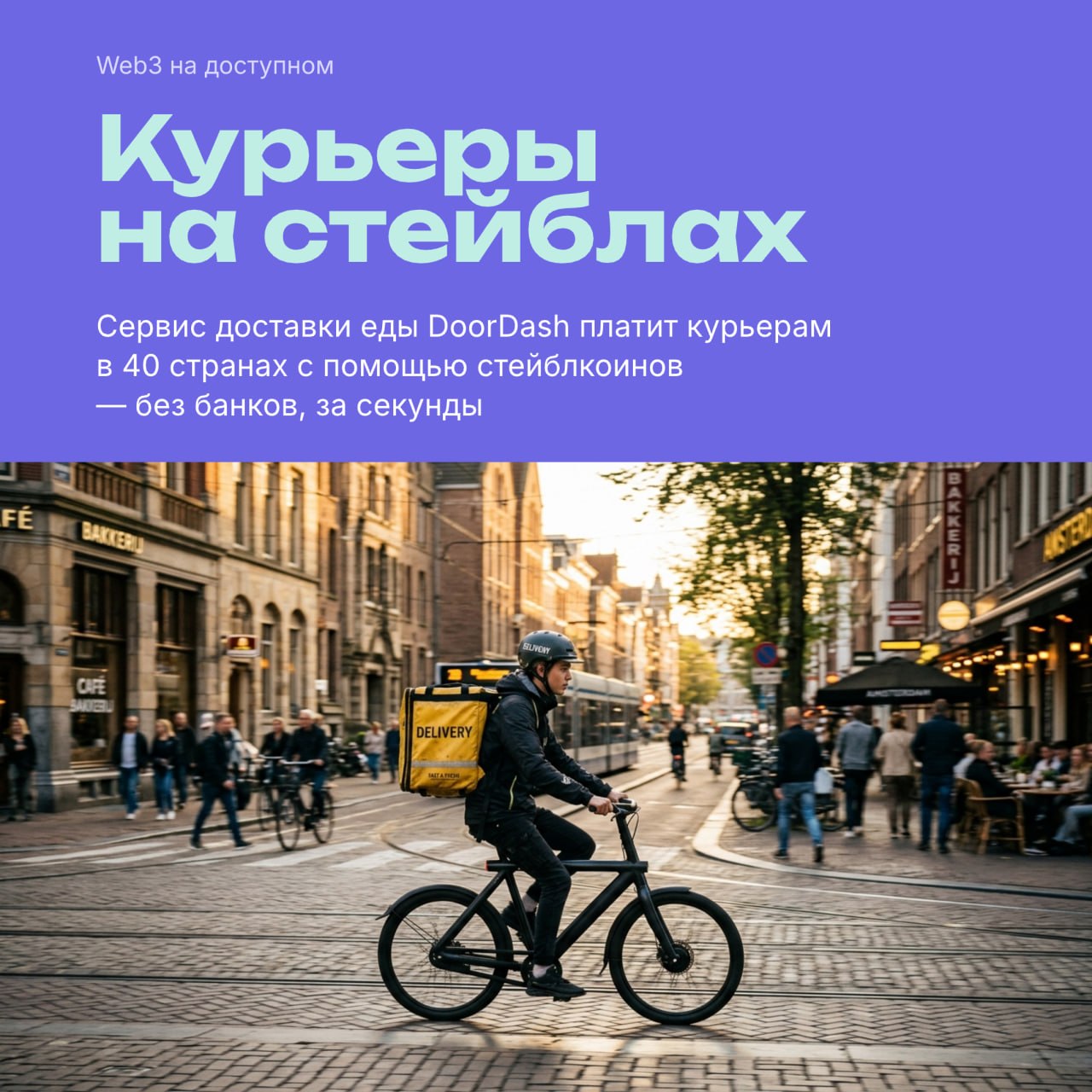 DoorDash (глобальная служба доставки — как Яндекс Еда, только в десятках стран) запустил выплаты курьерам в стейблах. Зарплата падает прямо в кошелёк — за секунды, без банка, без конвертации.
