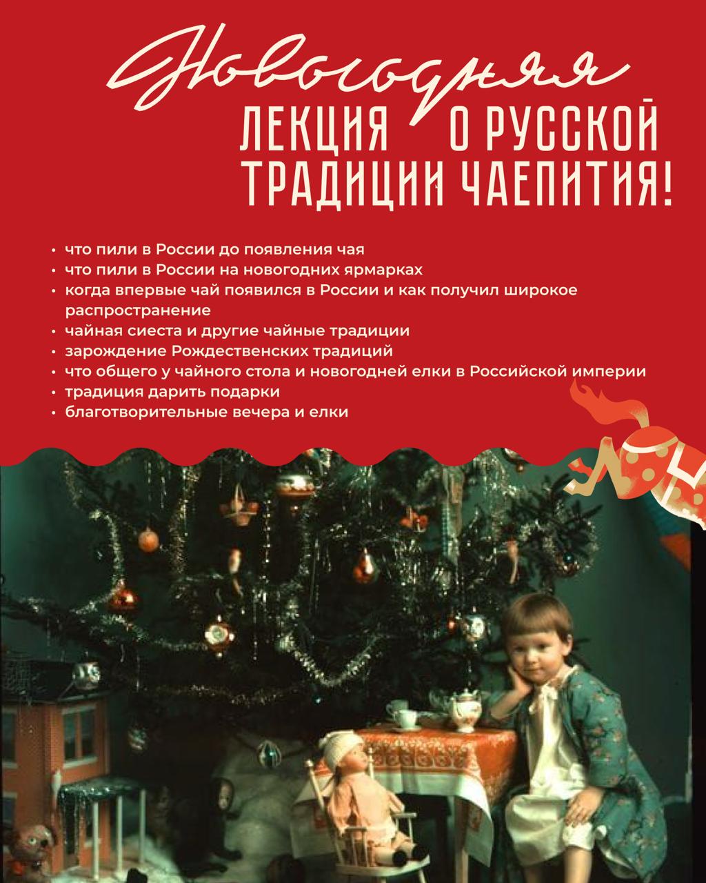 И в декабре, а затем и во все новогодние каникулы мы приглашаем вас на особую лекцию «Русская традиция чаепития — новогодняя».