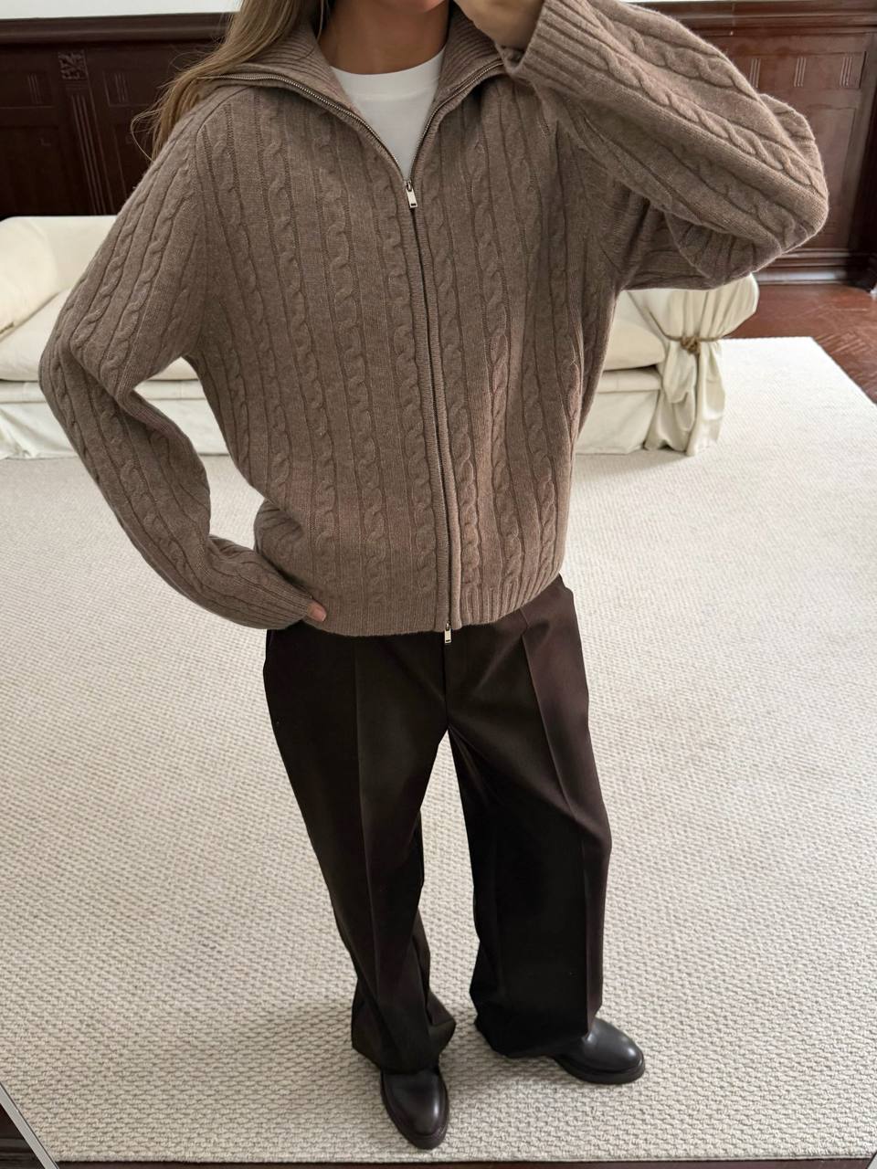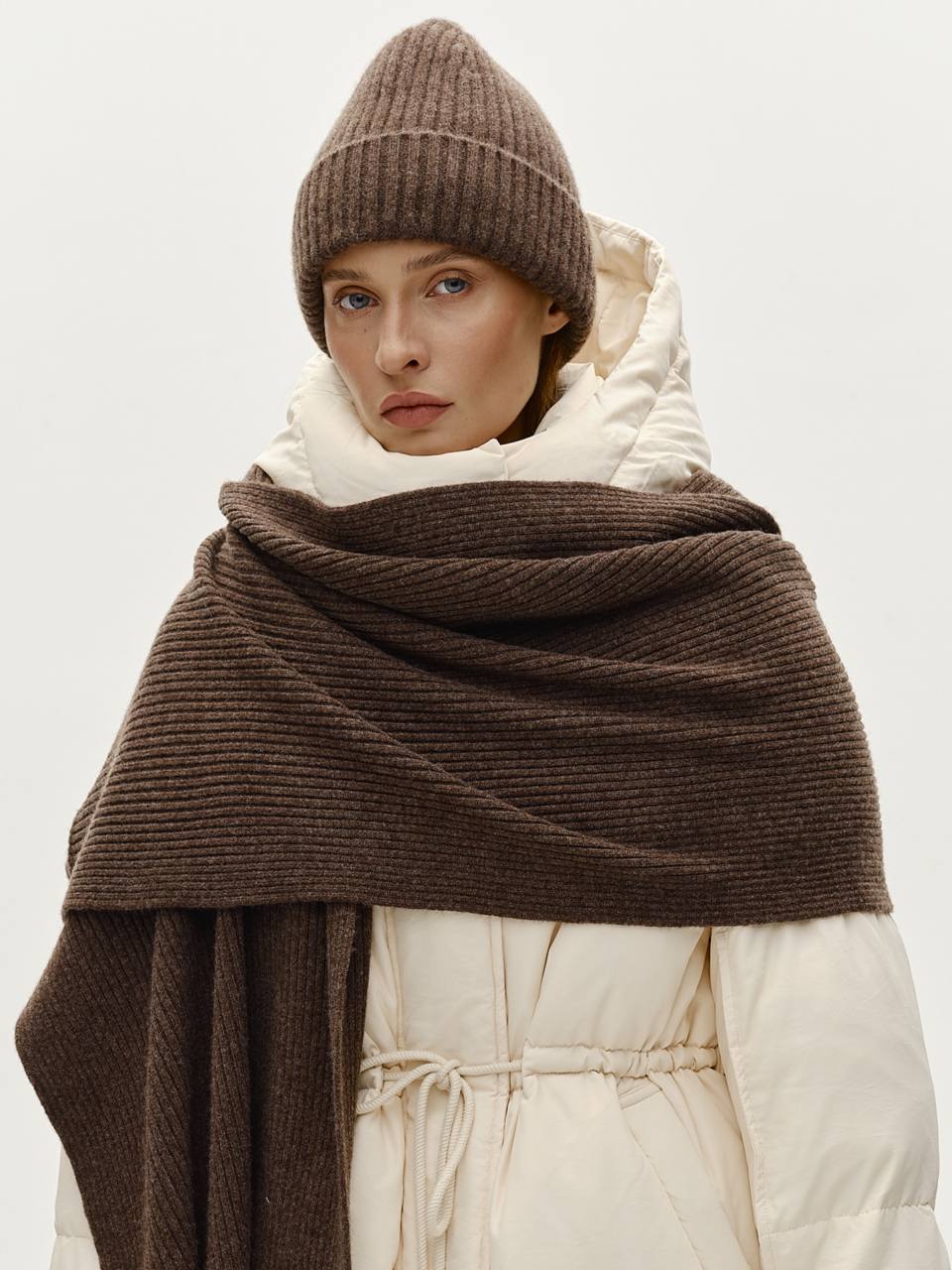 Согревающие аксессуары, которые надежно защитят от холода и ветра. В линии Вас ждут шарф, шапка и перчатки в палитре оттенков, вдохновленой осенними пейзажами. Базовые изделия с плетением нити в рубчик.