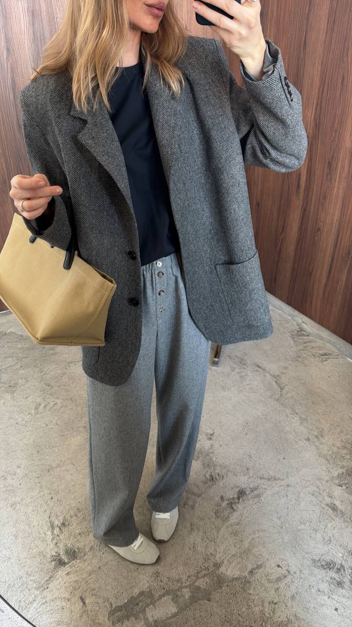 Ткань - плотная натуральная шерсть с матовой фактурой, которая отлично держит форму.