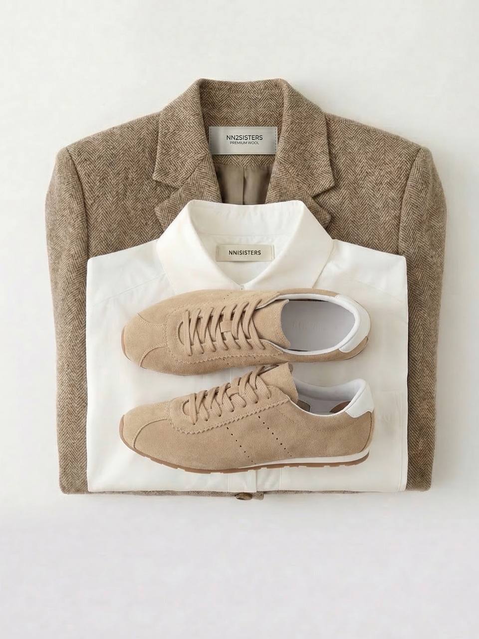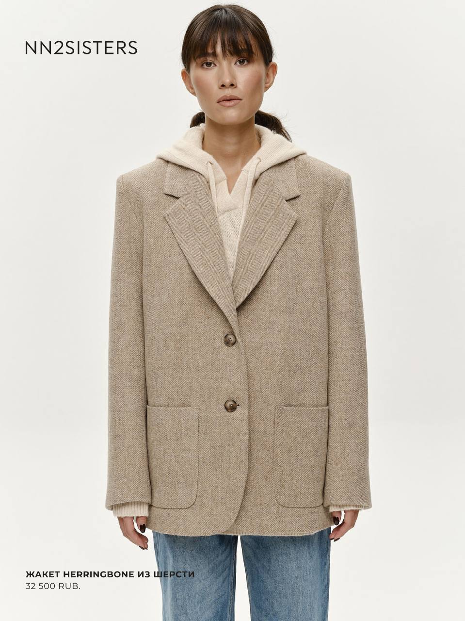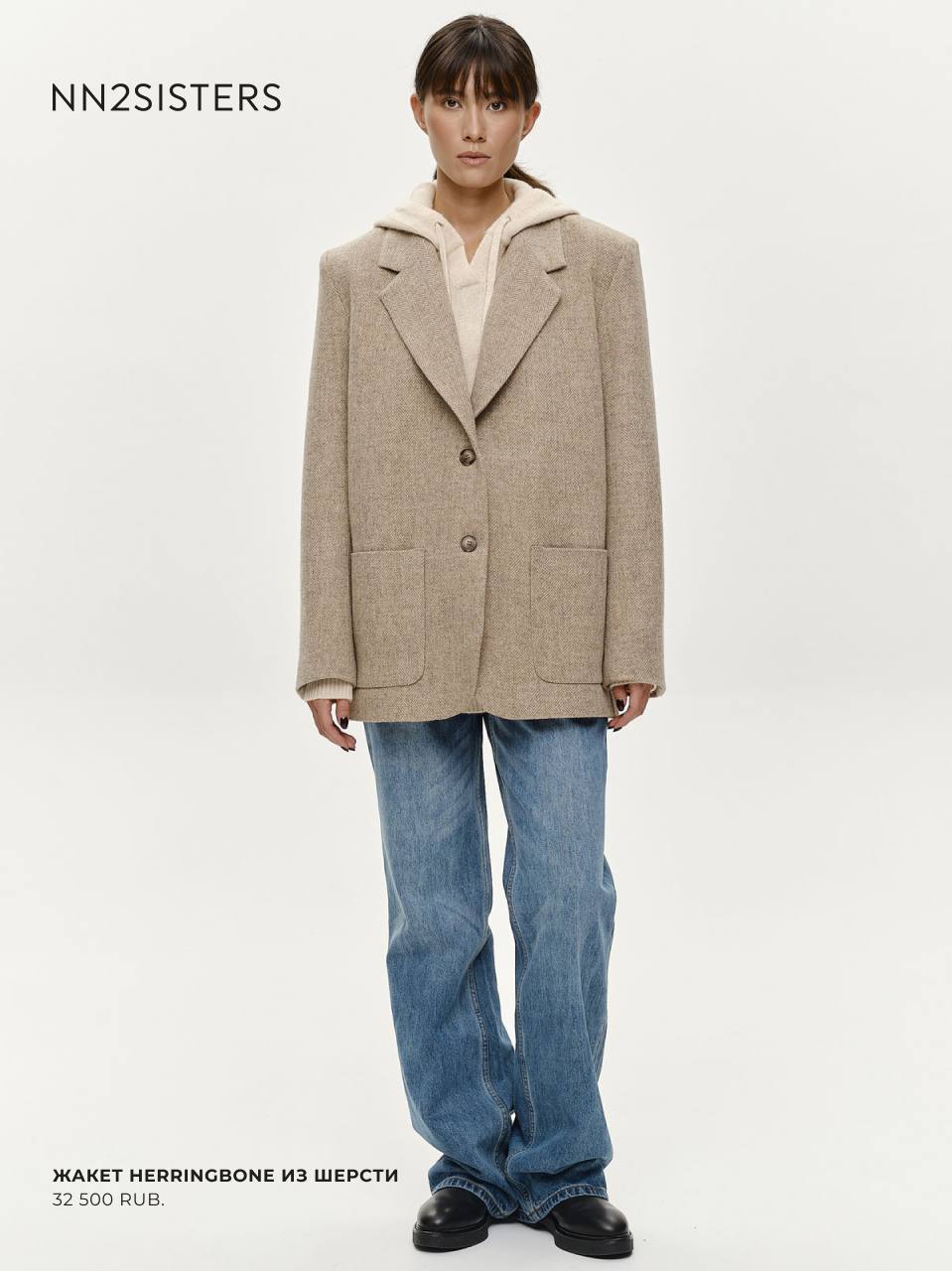 Белая рубашка из хлопка, аккуратные кеды и жакет HERRINGBONE из шерсти свободного кроя с принтом в «елочку» — чистые линии, сдержанная палитра и выверенные силуэты делают такие вещи вне времени — они легко адаптируются под любой повод и остаются актуальными из сезона в сезон.