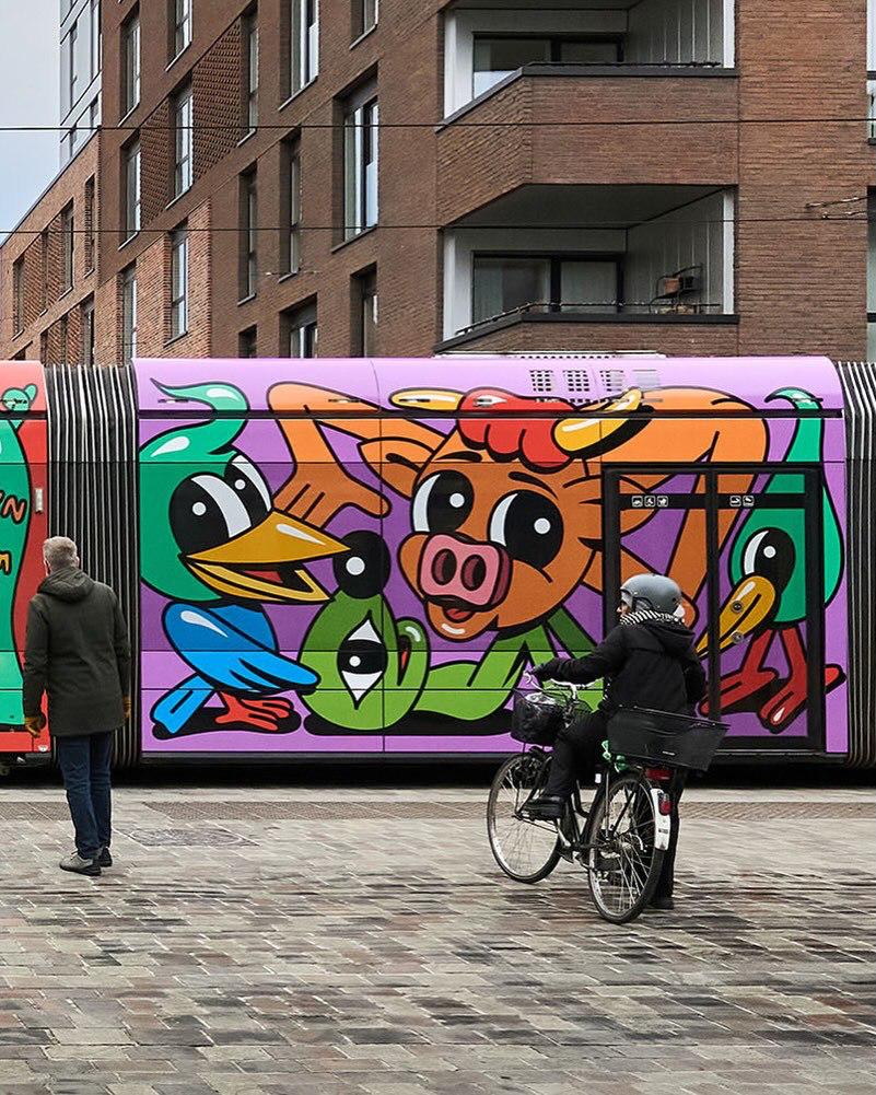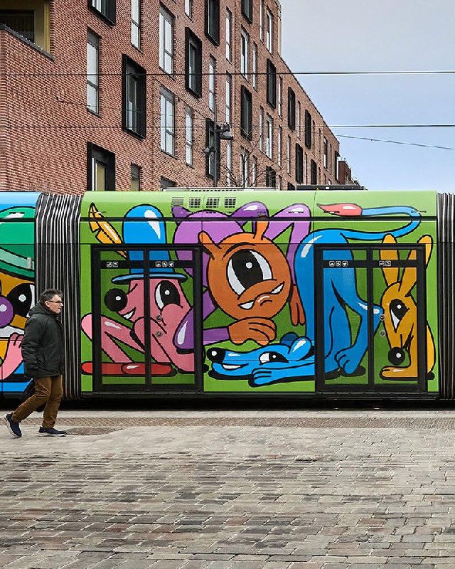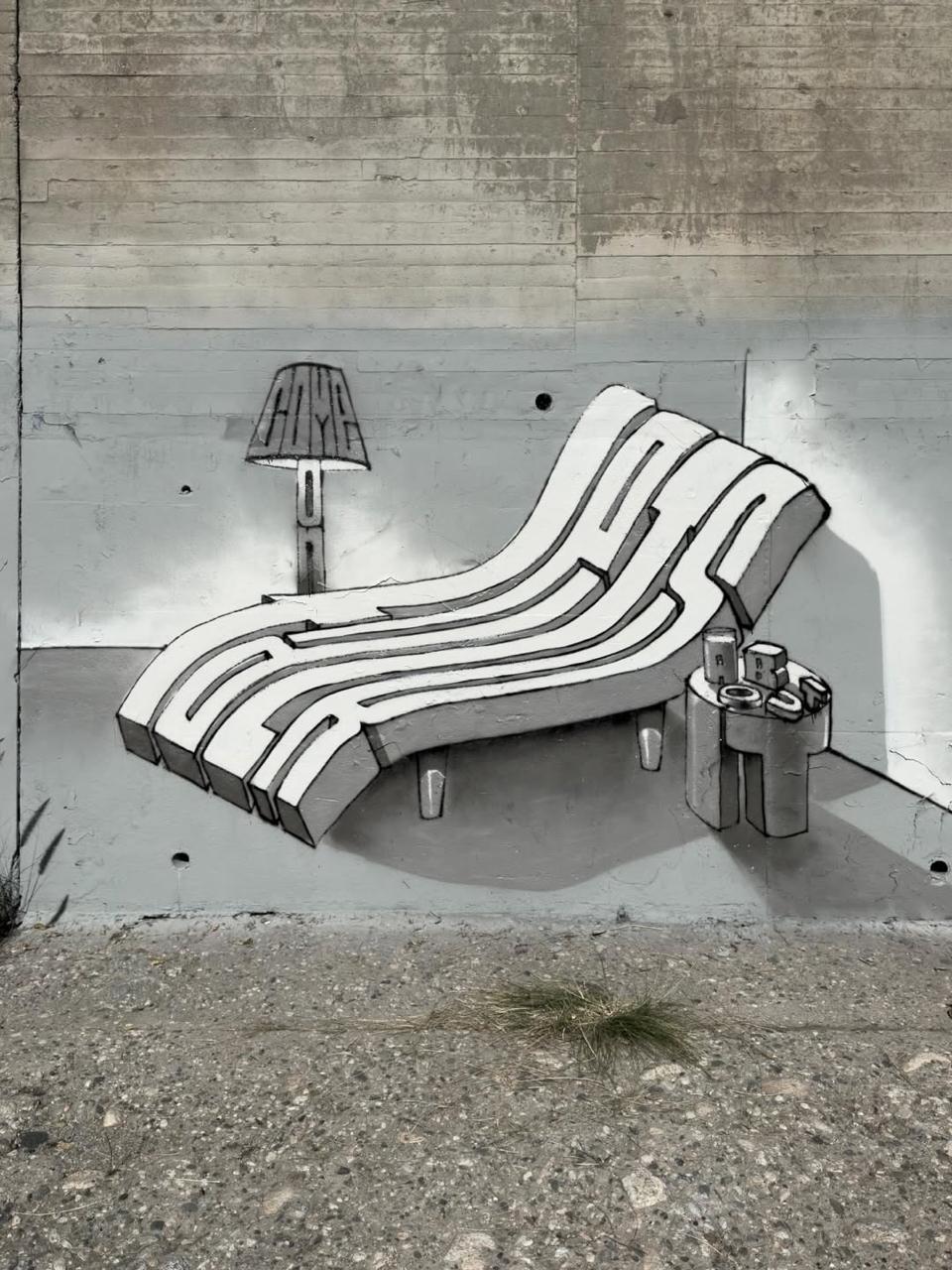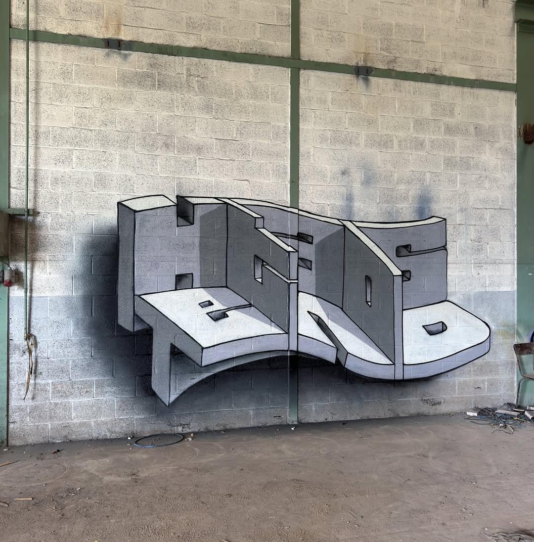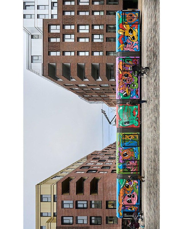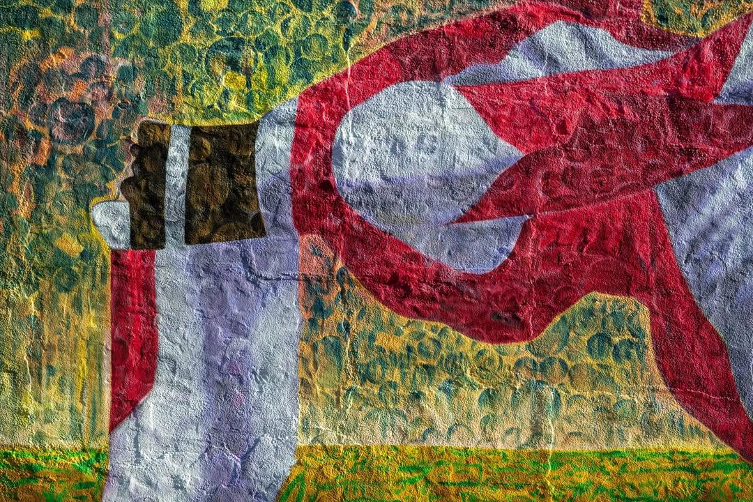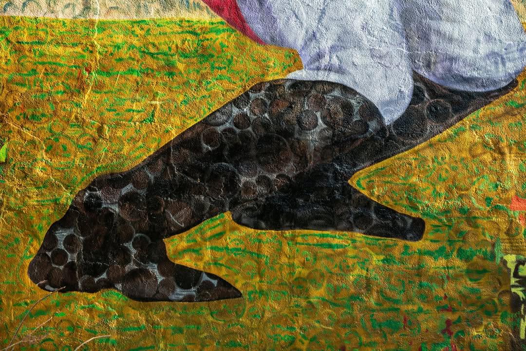 На мурале изображены два темнокожих лидера маршевого оркестра в момент эффектного приветственного движения «drum major backbend».