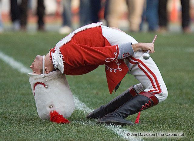 Этот знаковый салют представляет собой атлетический акробатический трюк, при котором барабанщик наклоняется назад так, что его шапочка почти касается земли.