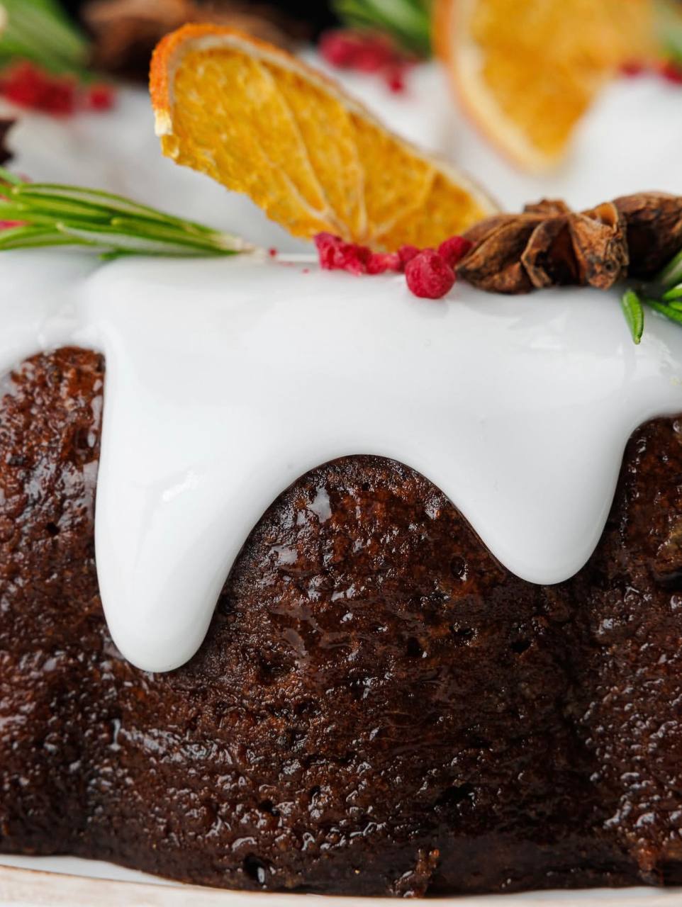 Попробуйте рождественский кекс в ресторане AQUAMARINE, приготовленный из мелконатертой тыквы, с курагой, вяленой клюквой, добавлением апельсинового фреша, обжаренного грецкого ореха, муки, яиц и сахара. Каждый кекс украшен засахаренными апельсинами, бадьяном и сублимированной малиной.