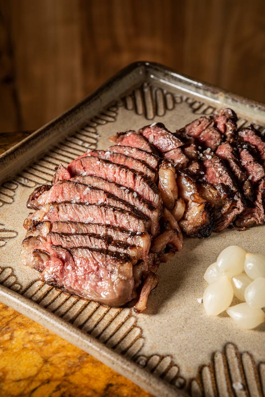 Тендерлойн Вагю Аргентина с кимчи Премиальная вырезка, обжаренная до идеальной сочности. Подается с крупной солью и соусом кимчи — дерзкий контраст нежного мяса и ферментированной остроты.