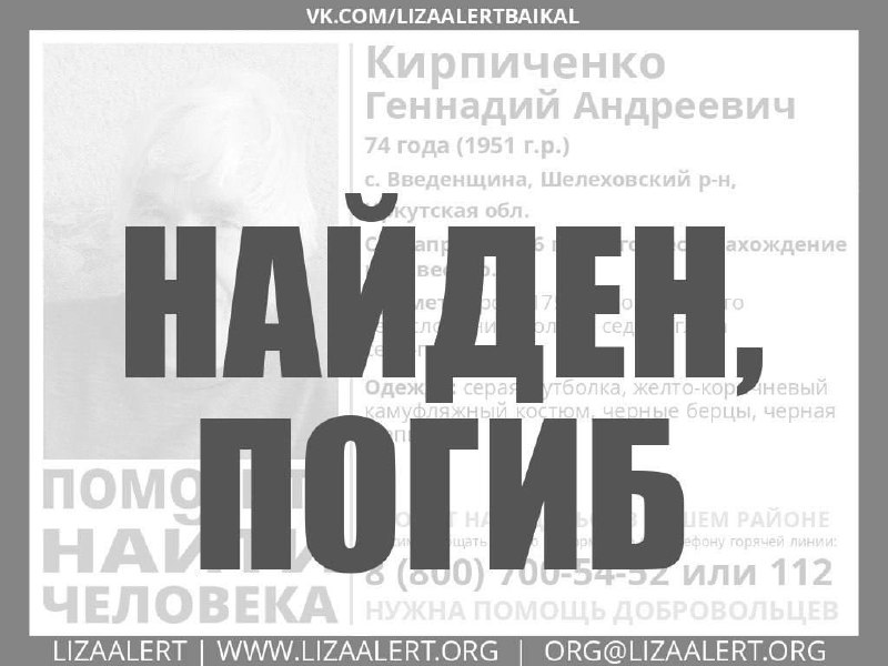 Вчера в полицию обратились родственники братчанина. Они рассказали, что 70-летний мужчина отправился на автомобиле «НИВА» из посёлка Озёрный в сторону Братска по льду водохранилища и перестал выходить на связь. Вскоре потерявшийся дозвонился до близких и сообщил, что его автомобиль застрял в трещине, а сам он пешком направляется в посёлок Озёрный.