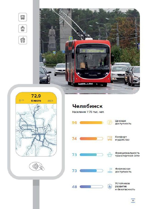 Челябинск занял шестое место в рейтинге лучших городских транспортных систем России по итогам 2025 года.