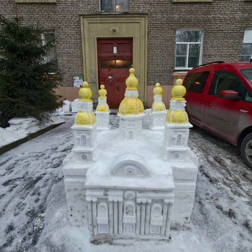 🏰Петербуржец построил снежный Никольский собор во дворе своего дома