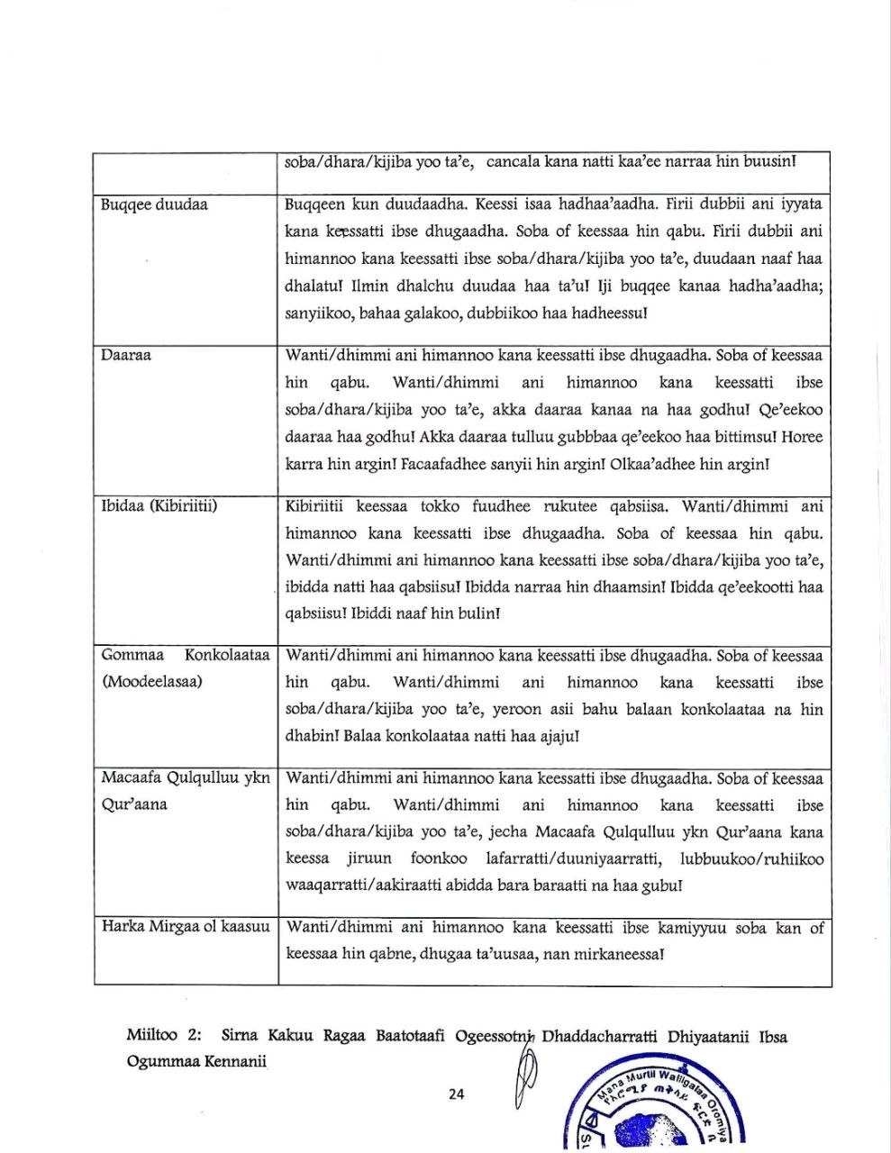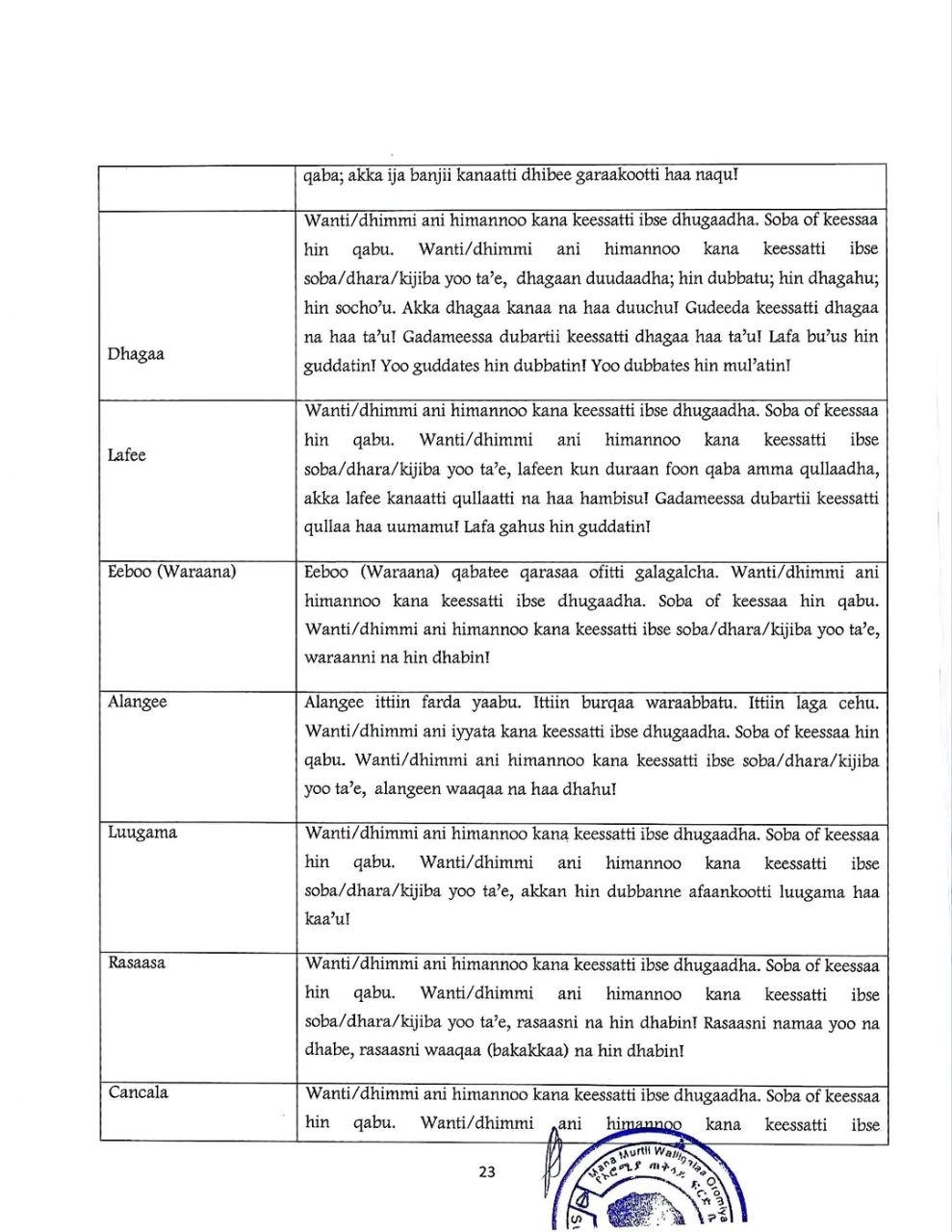 Federal Supreme Court Sentencing Guideline Directive no.2/2006 Afaan Oromo Version.