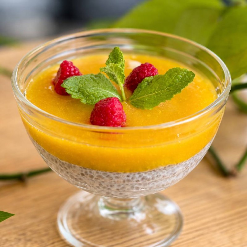 🥭 Пудинг с семенами чиа, пюре манго и малиной