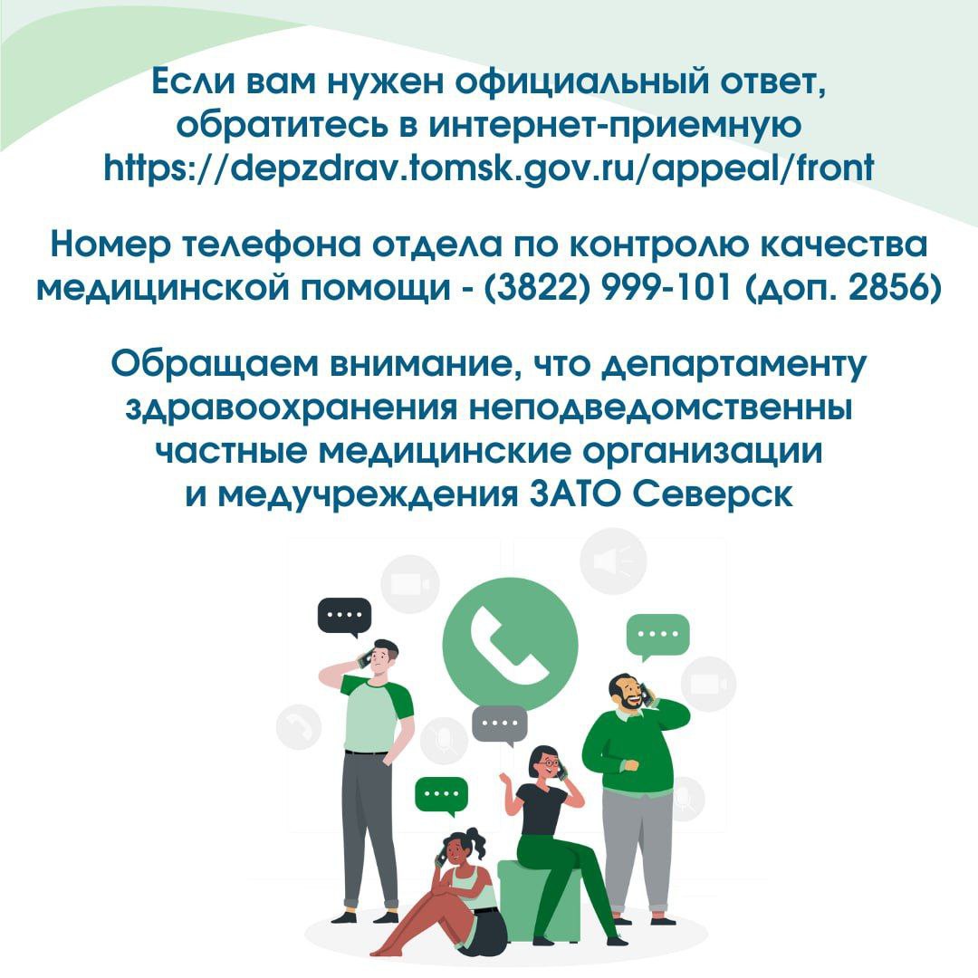 ❗️Мы не дублируем ответ на один и тот же вопрос, поэтому просим следить за оповещениями в Telegram. А также просим Вас исключить повторение Ваших вопросов, для того, чтобы не затруднять получение информации другими подписчиками. Просим учесть, что не все вопросы можно решить в социальных сетях, в частности, те, для решения которых необходимо проведение проверки. В таком случае Вы можете подать электронное обращение через официальный сайт департамента здравоохранения или письменное по адресу: г. Томск, пр. Кирова, 41 (индекс: 634041).