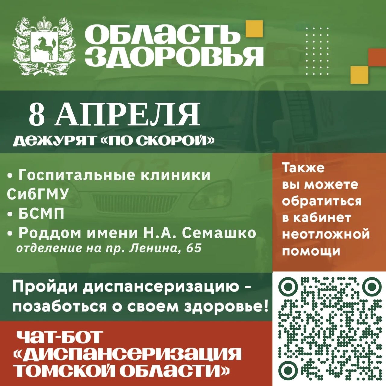 Чаще всего санавиация привлекается для спасения жителей региона с патологиями сосудистого профиля (инфаркты, инсульты, стенокардии), акушерского, а также для помощи больным с различными травмами, когда пациенту требуется высококвалифицированная медицинская помощь в специализированных центрах. Развитие санавиации в Томской области предусмотрено федеральным проектом «Совершенствование экстренной медицинской помощи» президентского национального проекта «Продолжительная и активная жизнь».