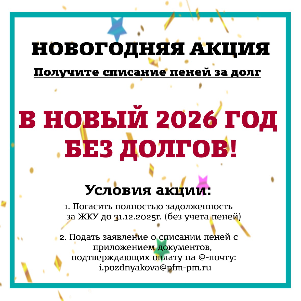 Управляющая компания ООО «Жилэксплуатация» запускает акцию «В Новый 2026 год без долгов!».