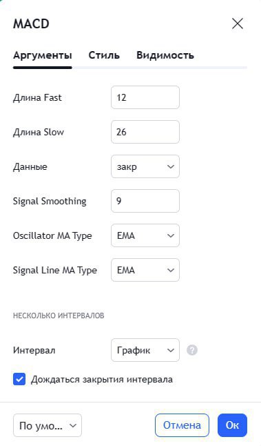 Настройки индикатора MACD.