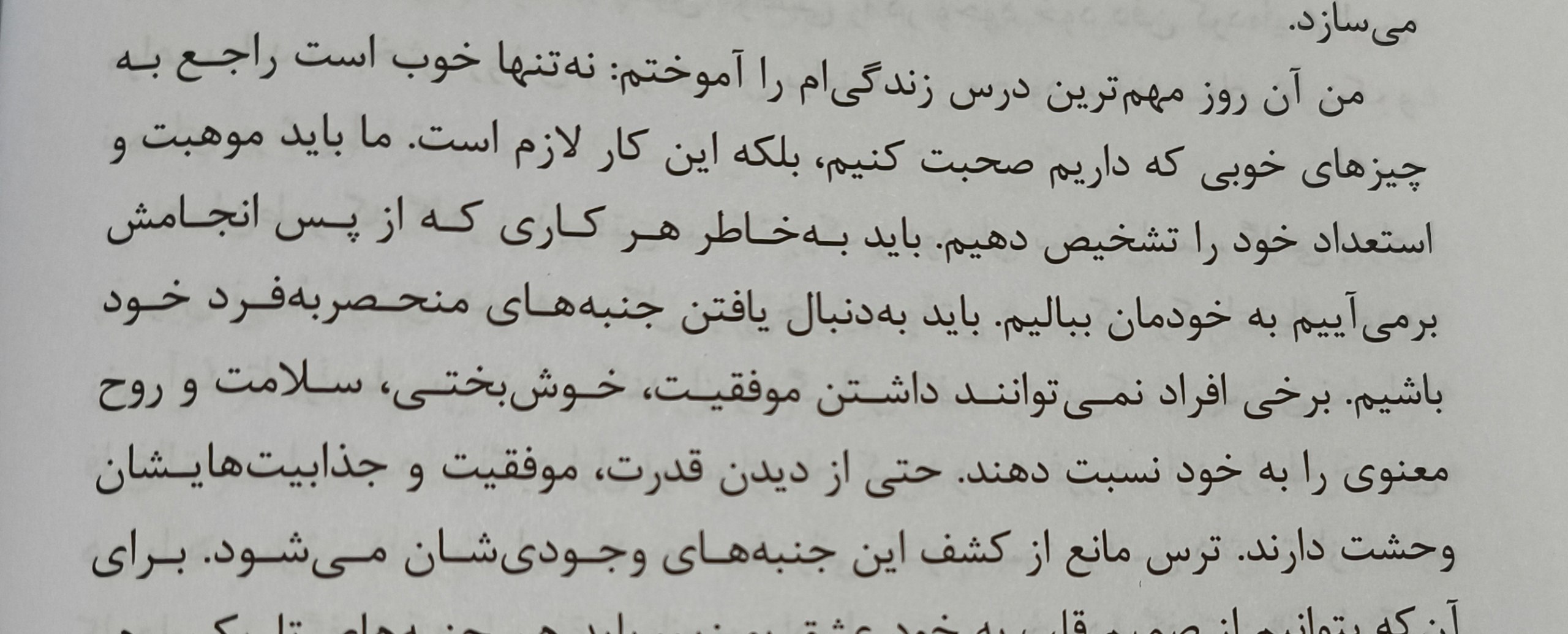 گمان میکردم که دیگر وجود ندارد، دور از من زندگی میکند، از همیشه زیباتر شده و متعلق به جهان گذشته است. جهانِ وقتی جوان و رمانتیک بودم، جهانِ وقتی خیال میکردم عشق تا ابد دوام میآورد و هیچچیز از عشقم به او بزرگتر نیست. جهانِ همهی این جفنگیات.