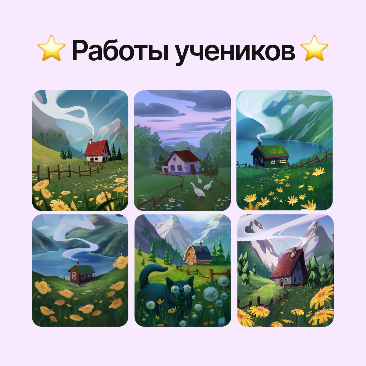 🍎Если хотите научиться выстраивать такие направляющие и делать композиции, которые цепляют — в туторе по пейзажу я подробно разбираю эту тему. Плюс рассказываю, как интерпретировать референсы, выбирать и расставлять акценты и многое другое.
