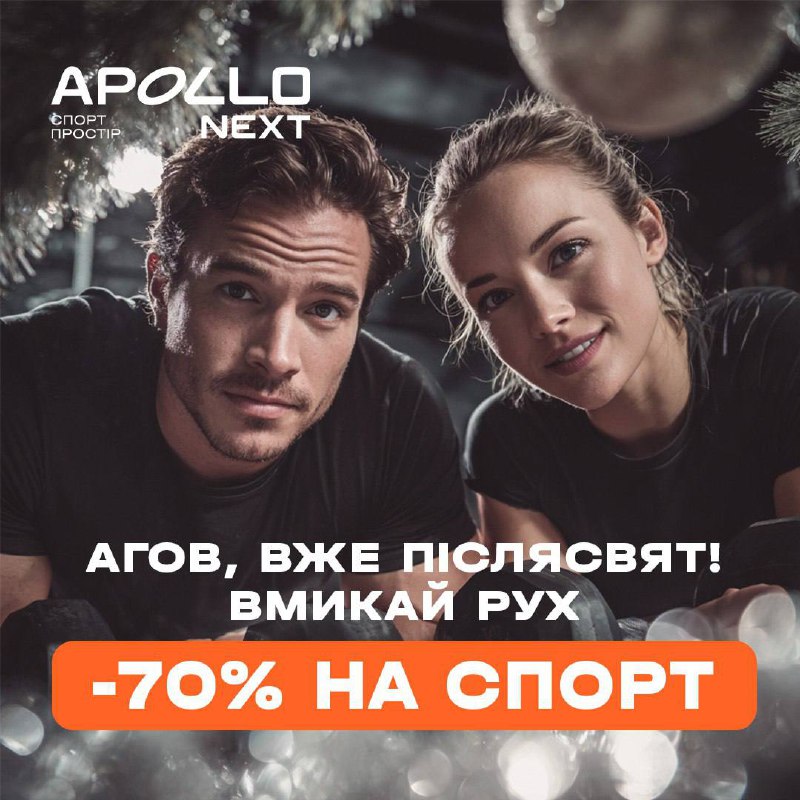 Даруємо 🎁 –70% на перші 4 тижні у спорт просторах мережі APOLLO NEXT по всiй Украiнi!