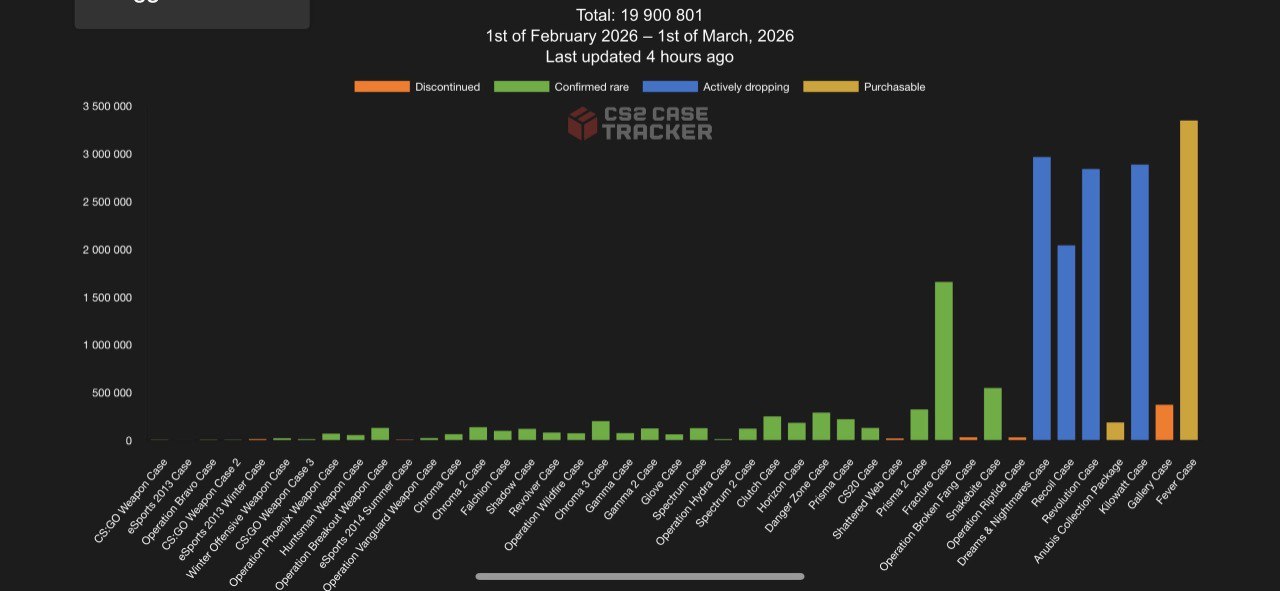 За февраль игроки сожгли 19,9 млн ящиков. В январе было открыто на 3,7 млн кейсов больше, однако и месяц был длиннее на два дня❗️