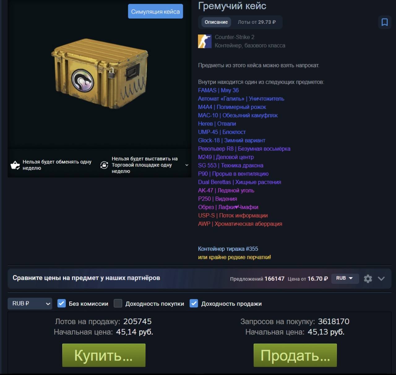 За час цена выросла на 100р. Если зафармил ящик и есть время - можно попробовать слить чуть дороже через 1-2 часа 📈