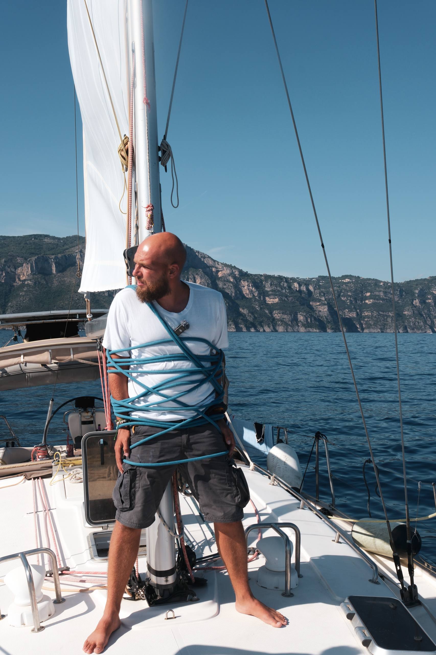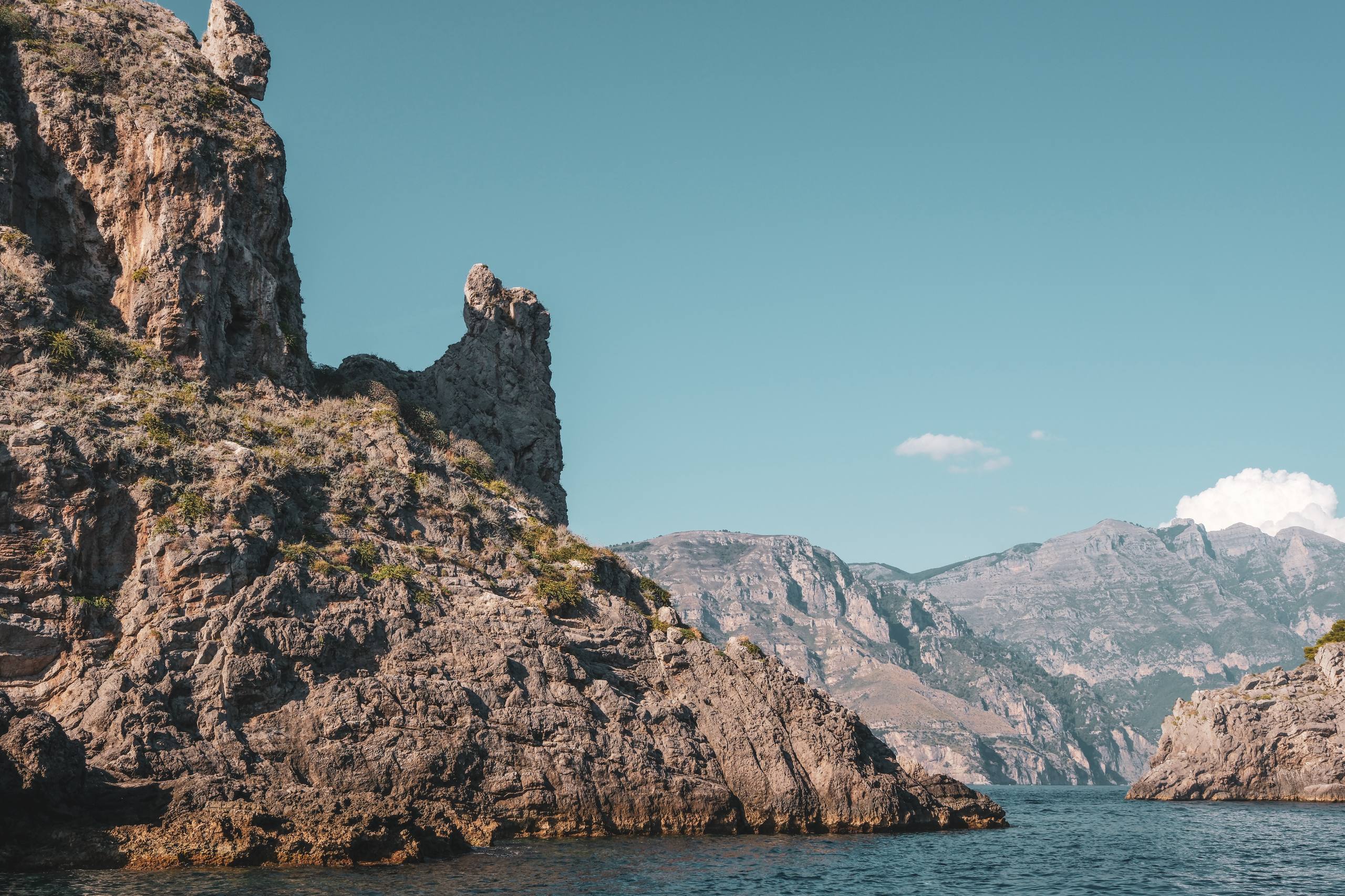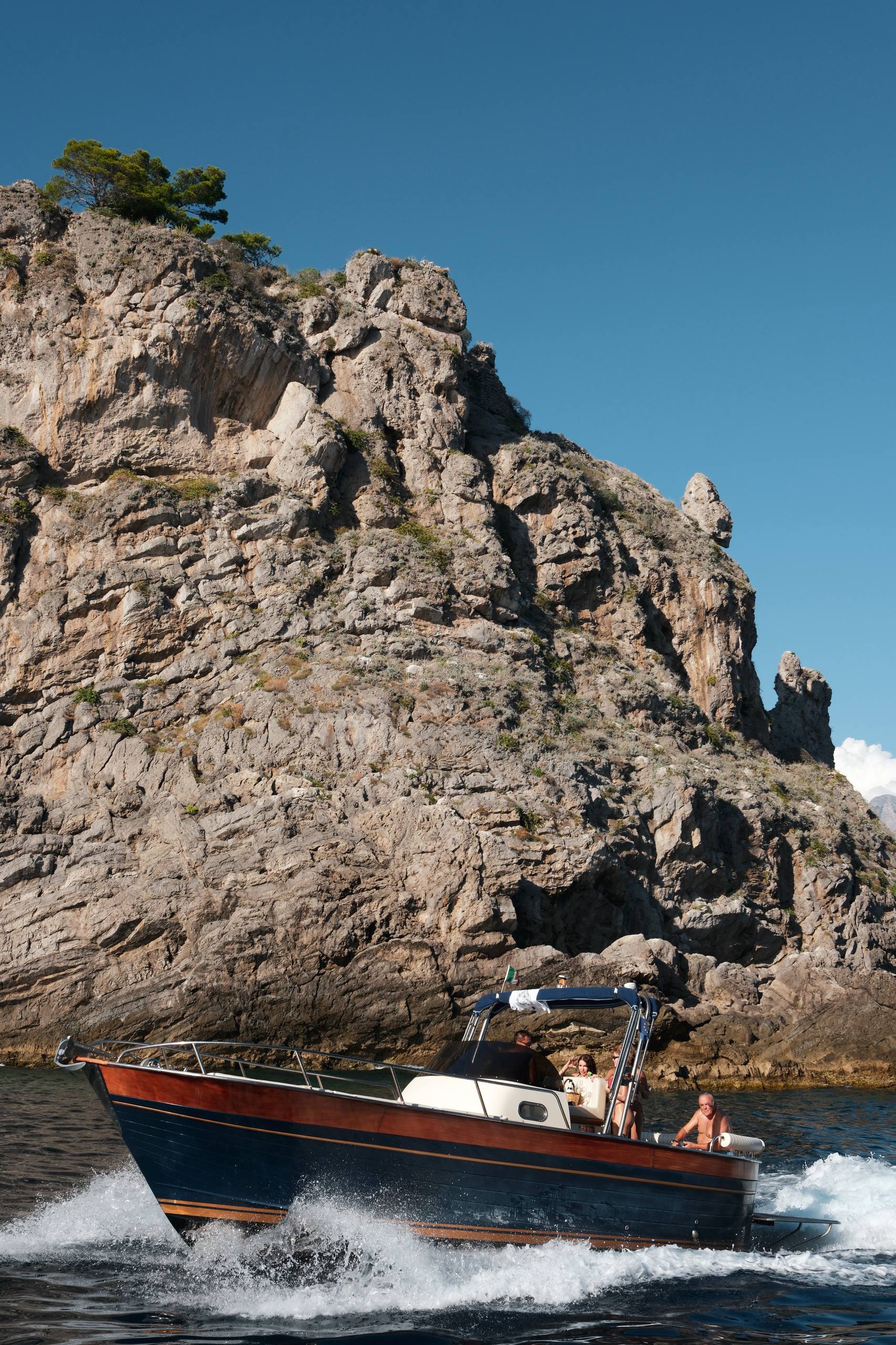 Я давно изучал карты разных лет, поэтому твёрдо знал: подходящие скалы только одни — это острова ли Галли. Они лежат в нескольких милях от знаменитого амальфитанского побережья. Погода так себе — штиль, так что идём под мотором. Зато тепло и солнце!