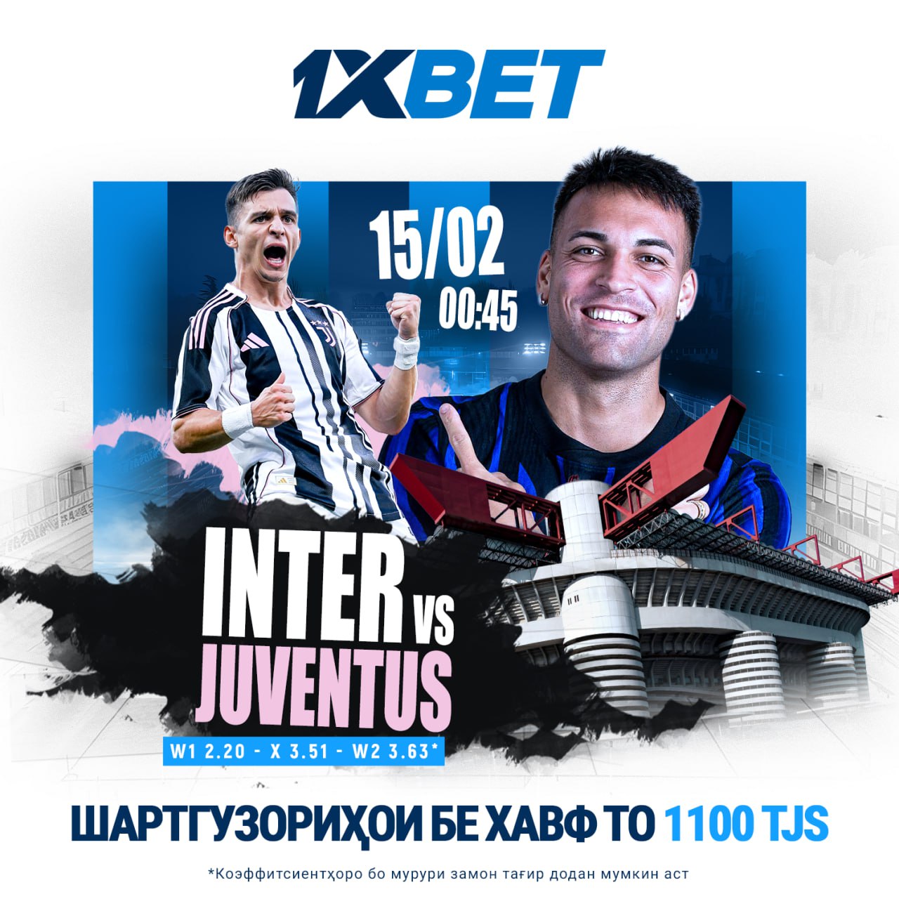 💥 Специально для этого матча спонсор спортивных эмоции 1xBet организовала КРУТОЙ БОНУС, которая позволит вам забрать до 100$ за первый депозит. Переходи, выбирай победителя и побеждай вместе с нами! 🙌