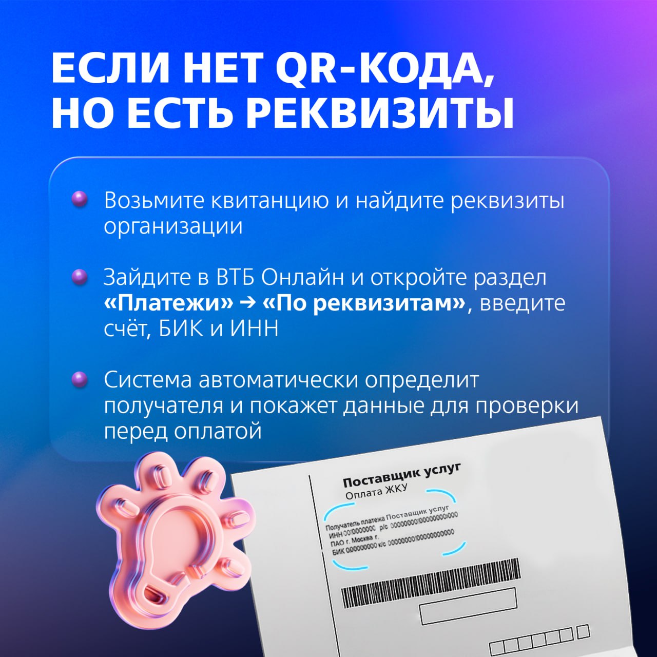 Оплата квитанции в ВТБ Онлайн — это когда не надо никуда ходить и нет комиссии. Подробности в карточках.
