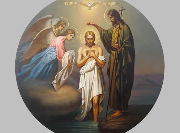 І ось до вод Іордану прийшов тридцятирічний Ісус Христос, Який сказав святому Іоанну хрестити Його. Здивований пророк, який дізнався за одкровенням згори, що перед ним стоїть не проста людина, а Син Божий, відповів Йому: “Мені треба хреститися від Тебе, і чи Ти приходиш до мене?” (Мф. 3:14) Але Спаситель сказав: “Так належить нам встановити будь-яку справедливість” (Мф. 3:15). Тоді Іоанн здійснив Хрещення Спасителя, в момент якого була явлена Пресвята Трійця: Господь Ісус Своєю плоттю занурився у воду, Дух Святий у вигляді голуба зійшов на Ісуса, а голос Бога Отця промовляв з небес: Цей є Син Мій Улюблений, в Котрому Моє благовоління (Мф. 3:17).