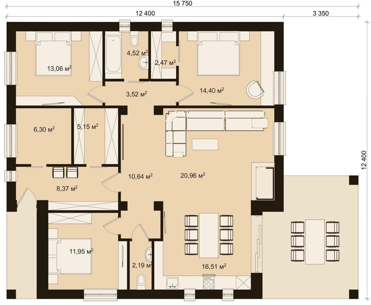 3 спальни минимум бесполезных метров
