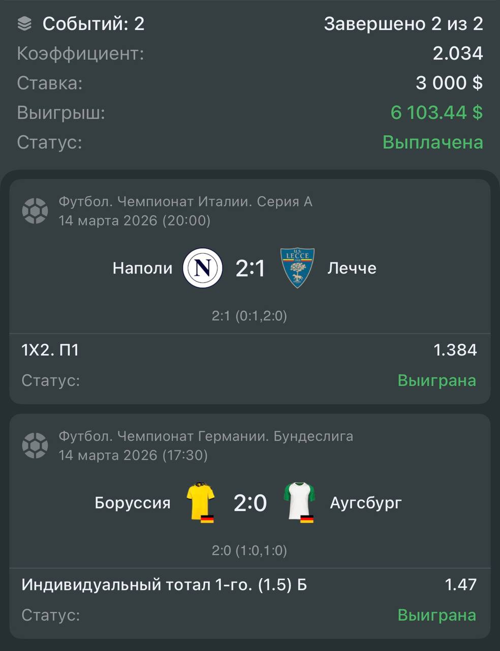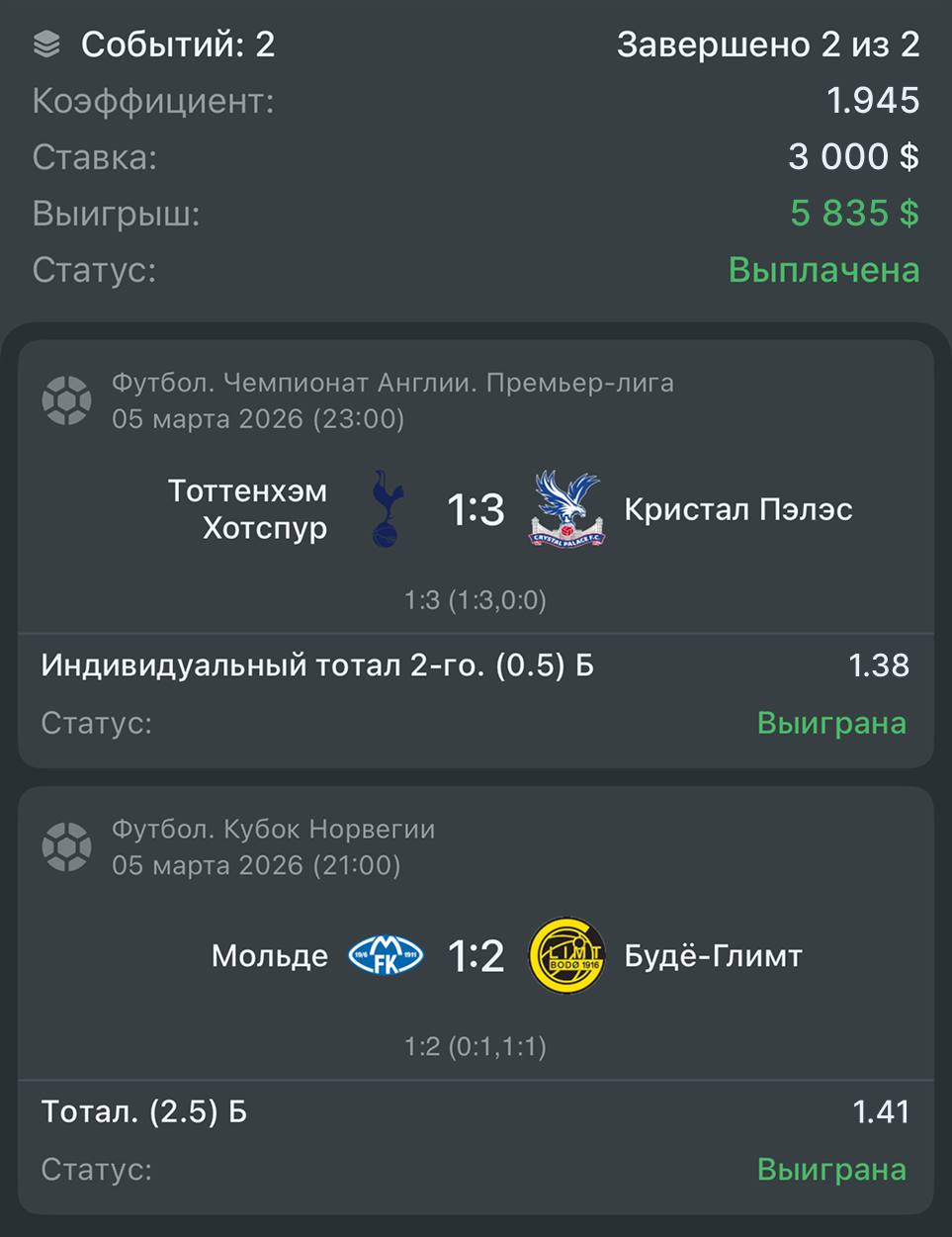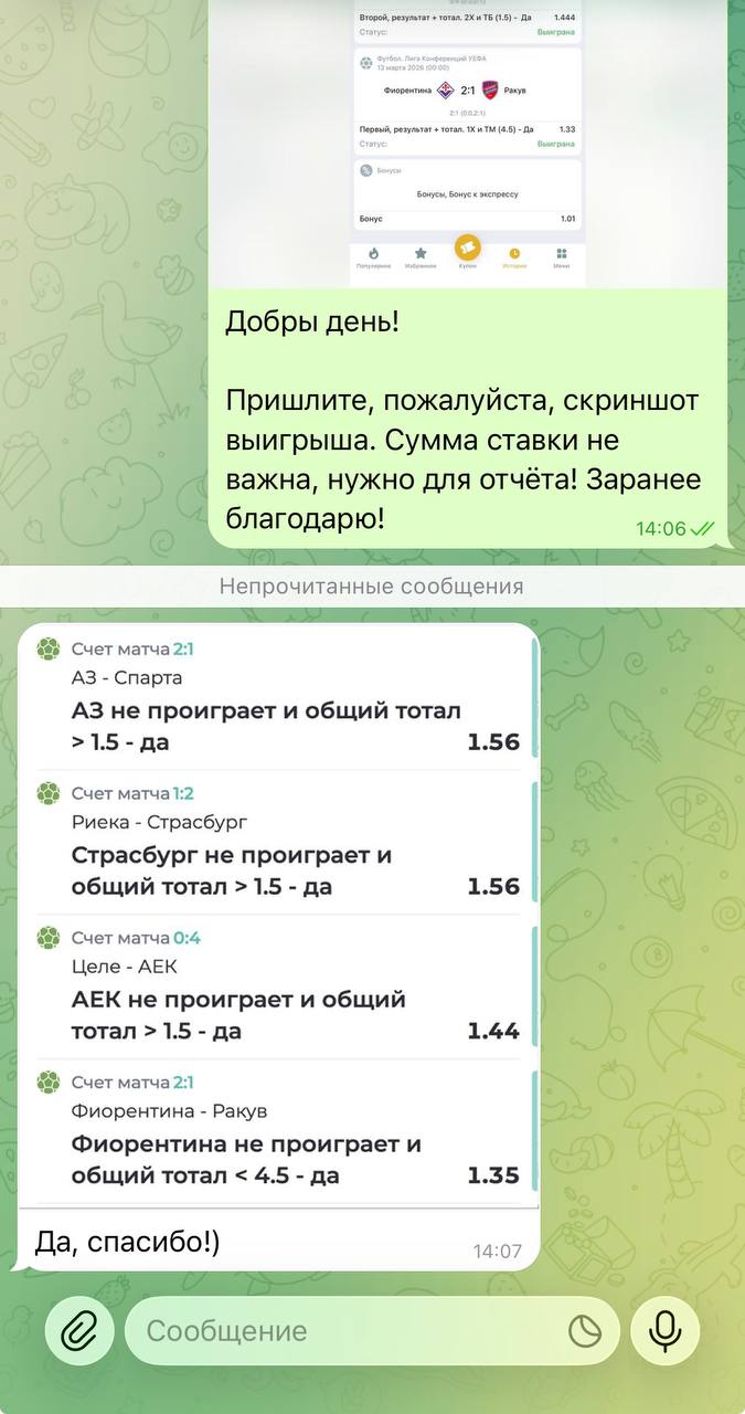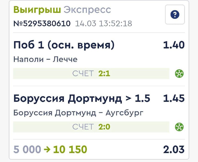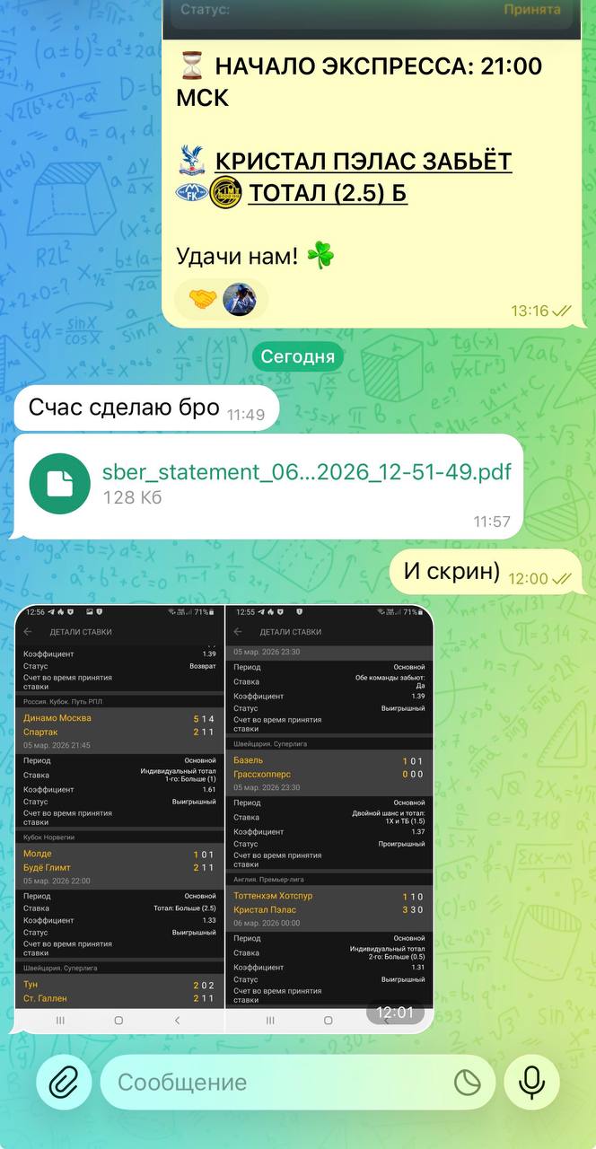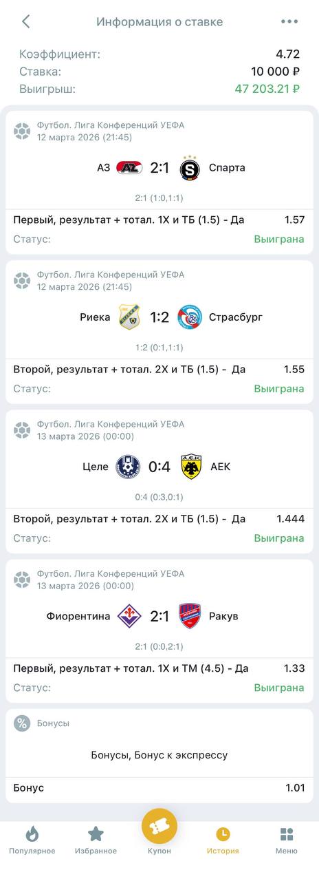 Первый экспресс уверенно зашёл, сразу после этого закрепили второй победой, и сейчас команда идёт за третьим плюсом подряд. Те, кто с нами, уже фиксируют прибыль на дистанции.