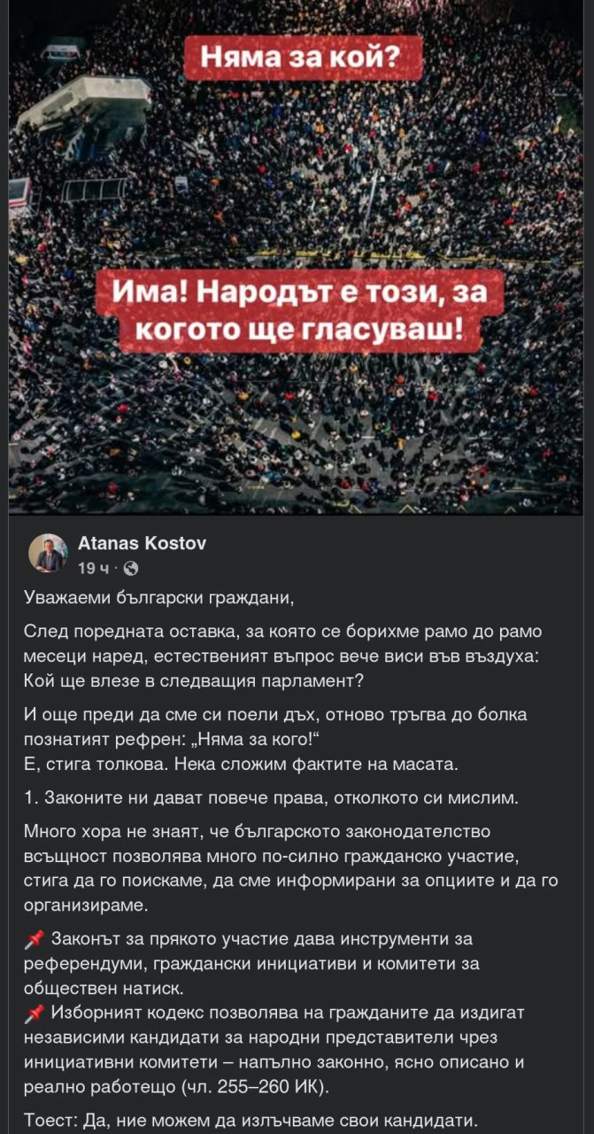 Но тази развръзка на постановката ще породи и плаха надежда у някои хора, че може би все пак има светлина в края на точно този много тъмен тунел и може някои от тях да отидат до бюлетинаджииниците този път, преди да се отчаят отново и да се откажат съвсем. Работата си върви по същия прозрачен сценарий.